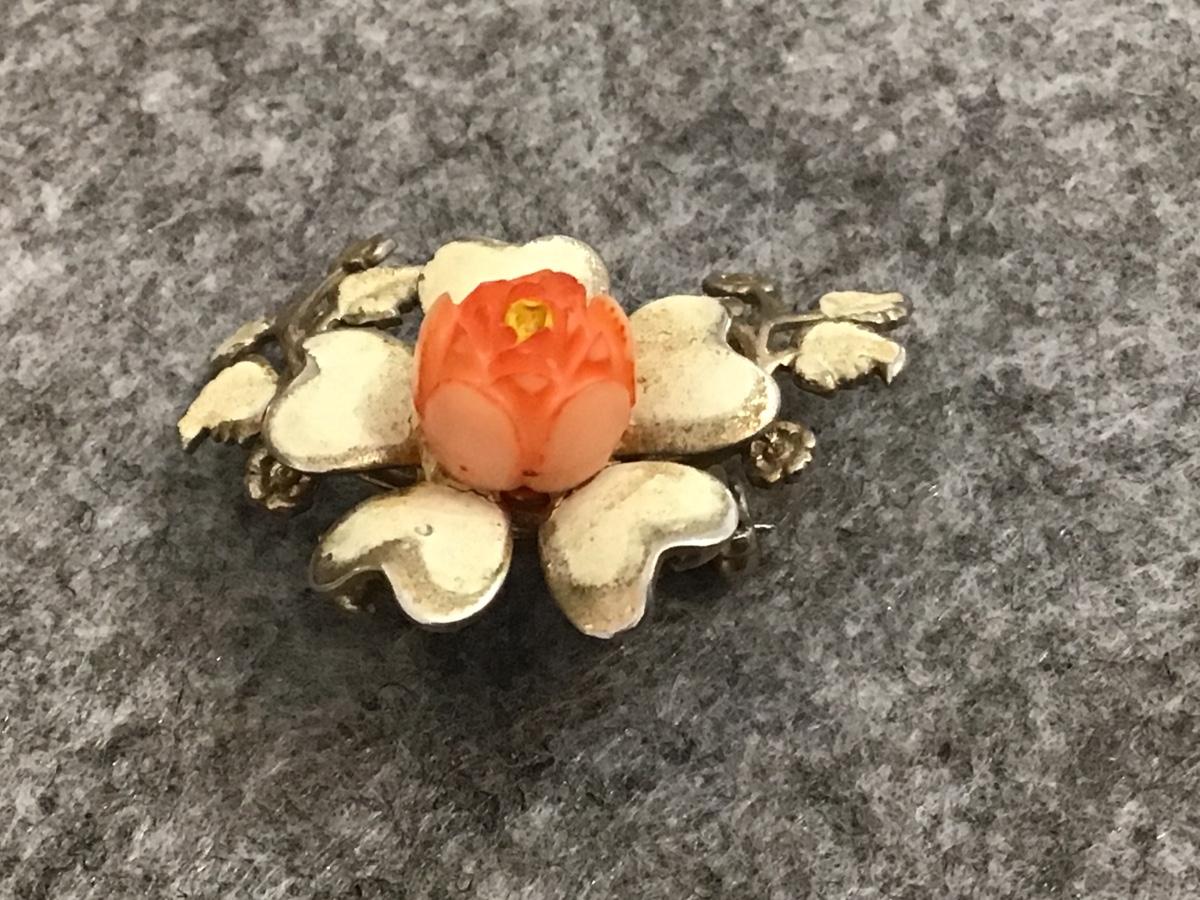 Antique Brooch with coral Type Flower
