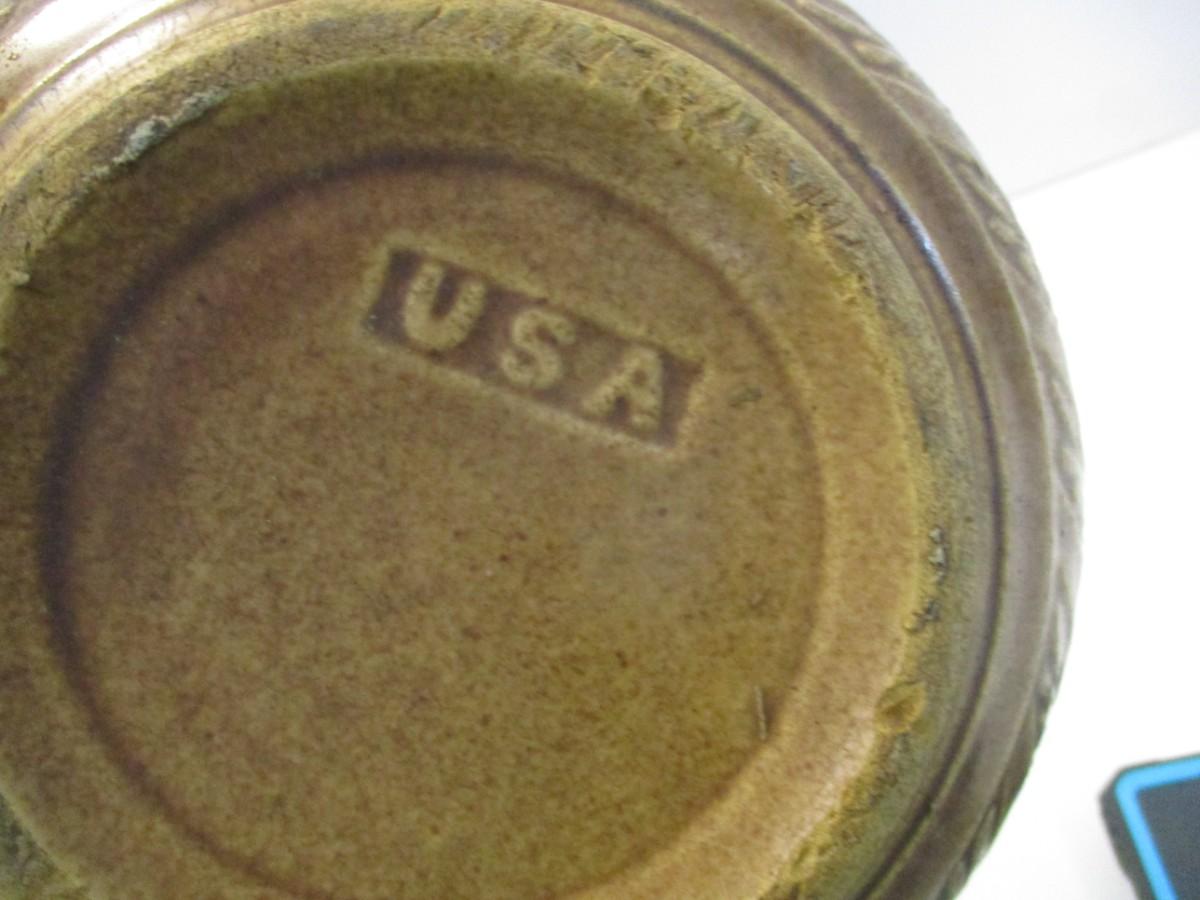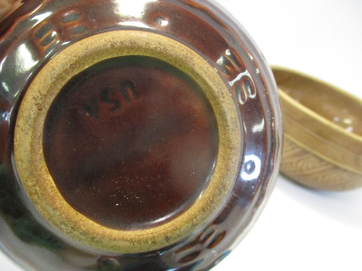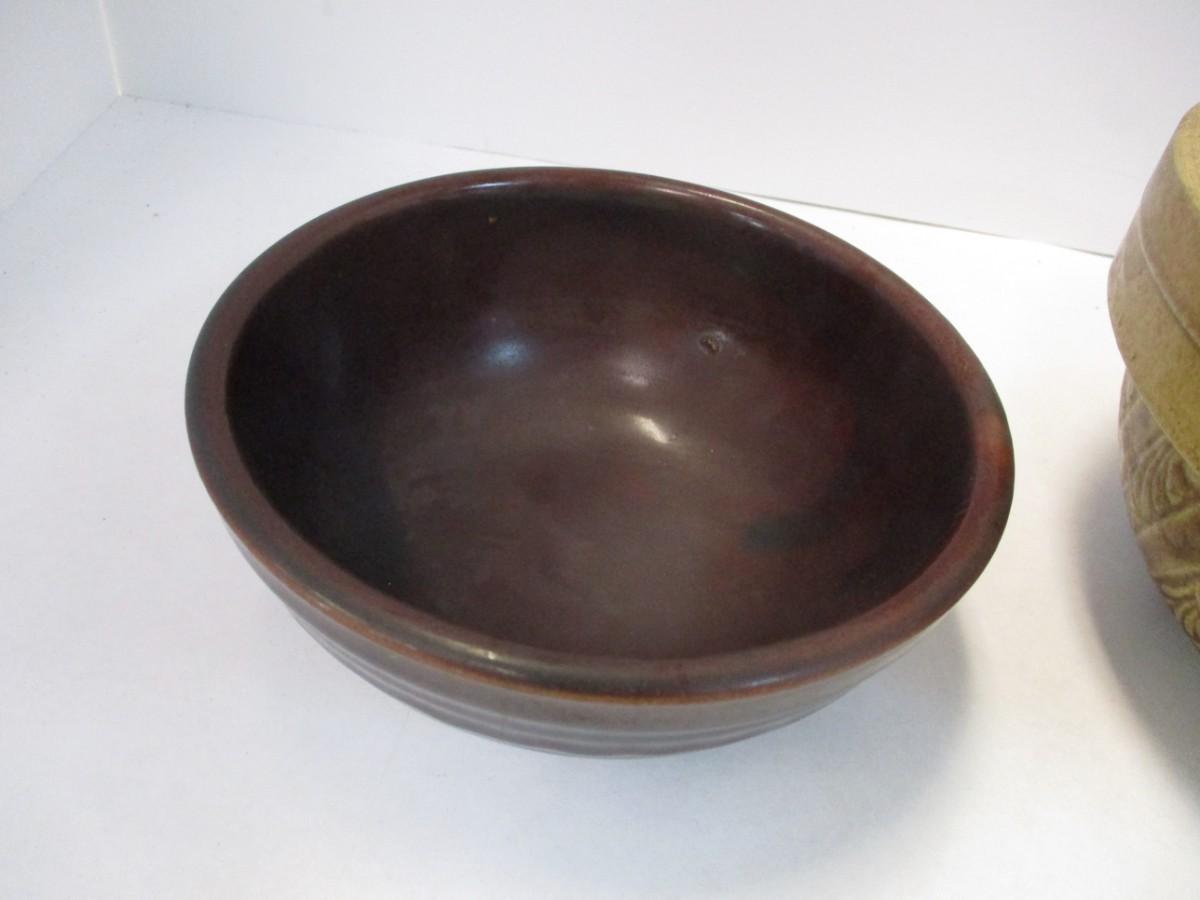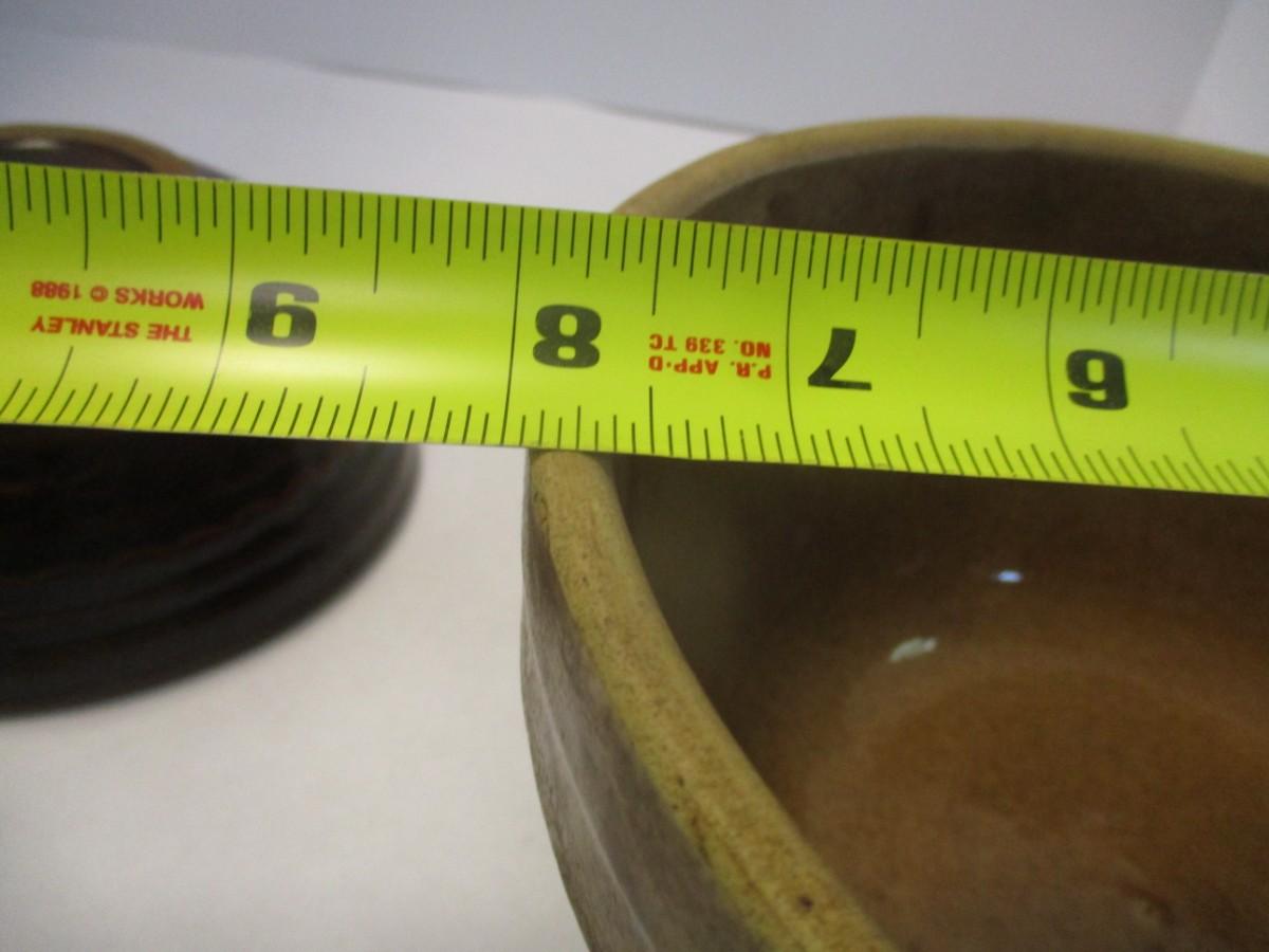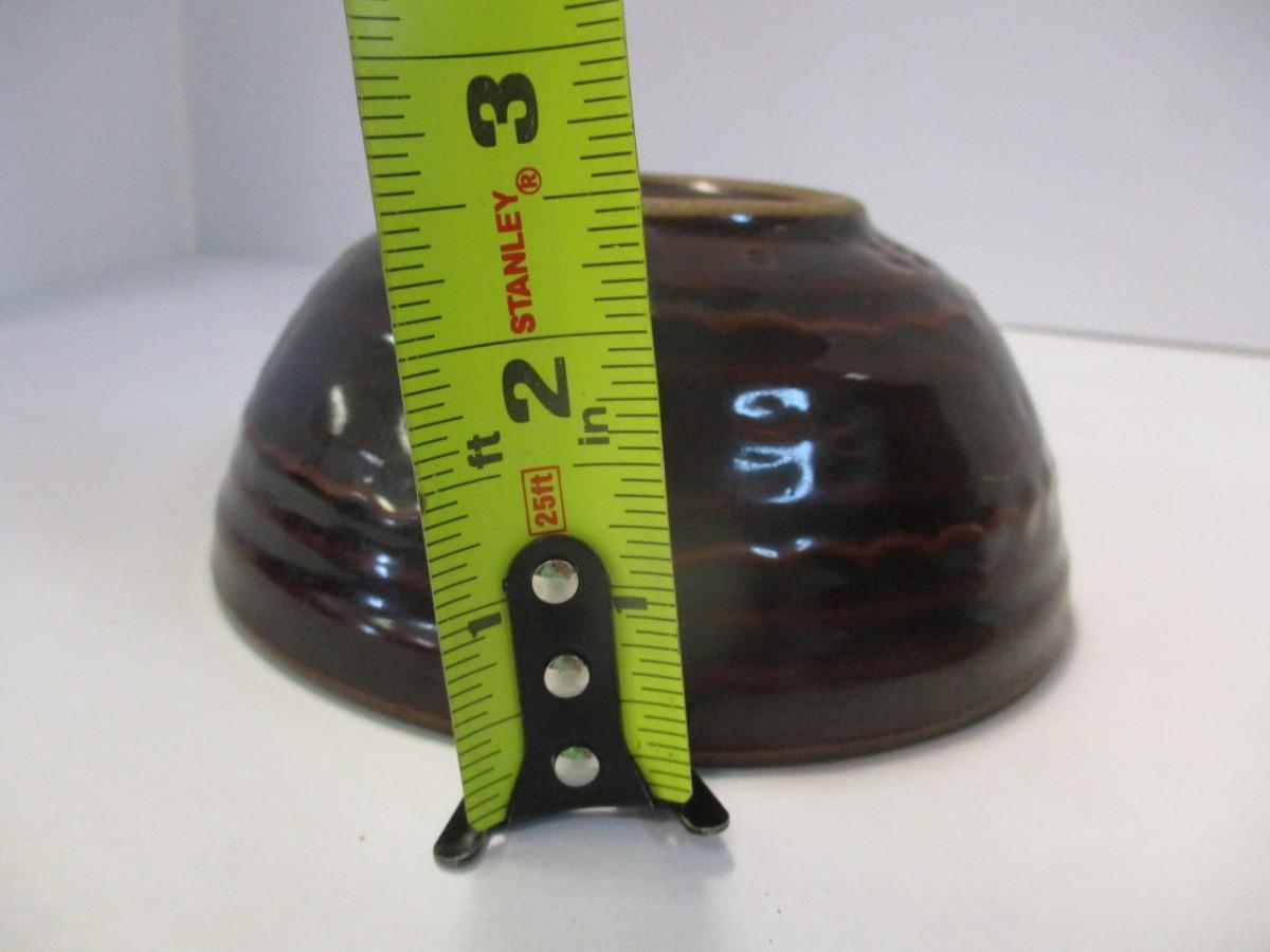 Antique Brown Embossed Stoneware Pottery Mixing Bowls Primitive Farmhouse Made In USA