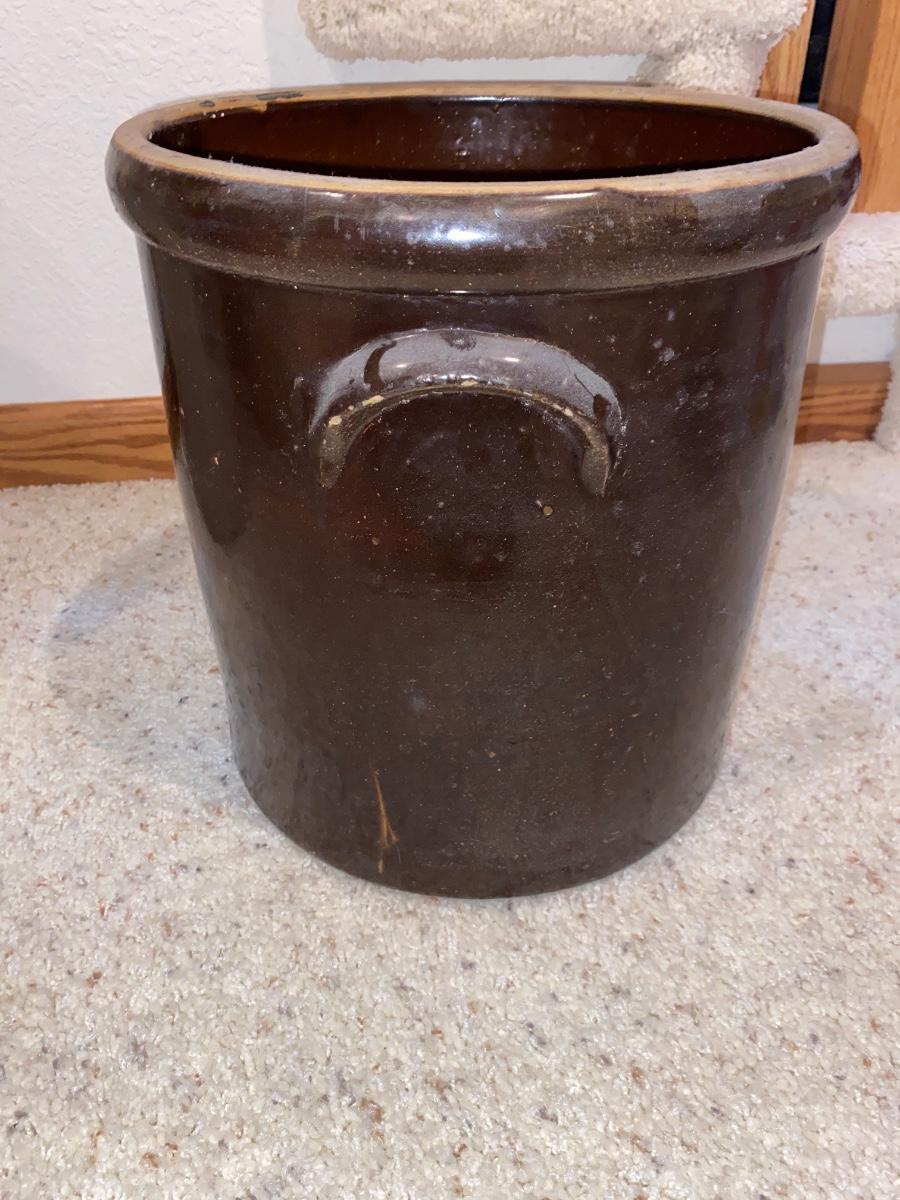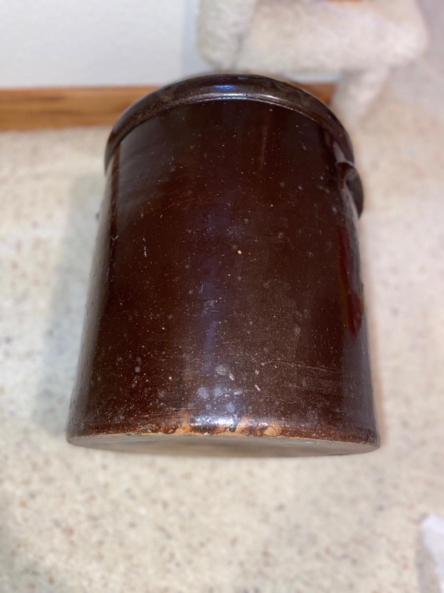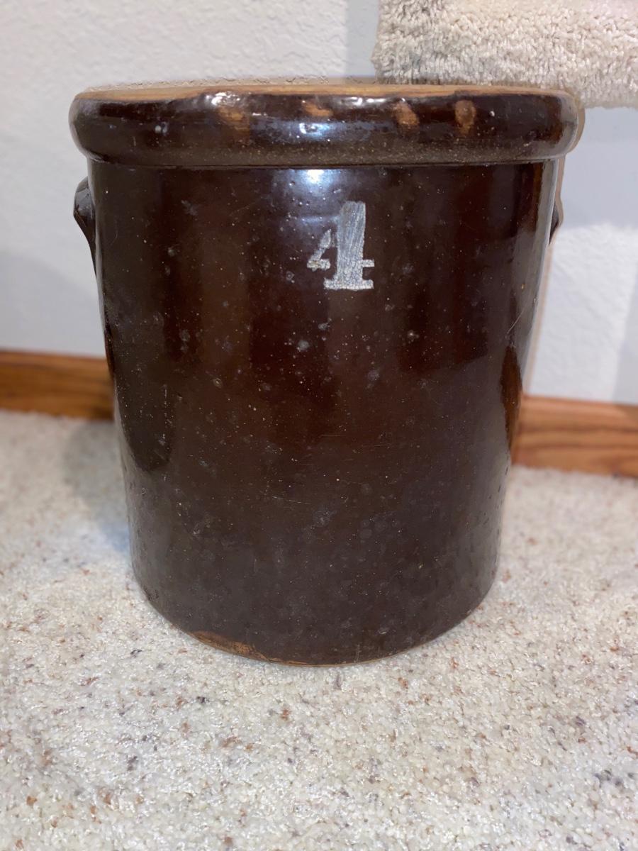 ANTIQUE BROWN STONEWARE GLAZED 4 GALLON CROCK