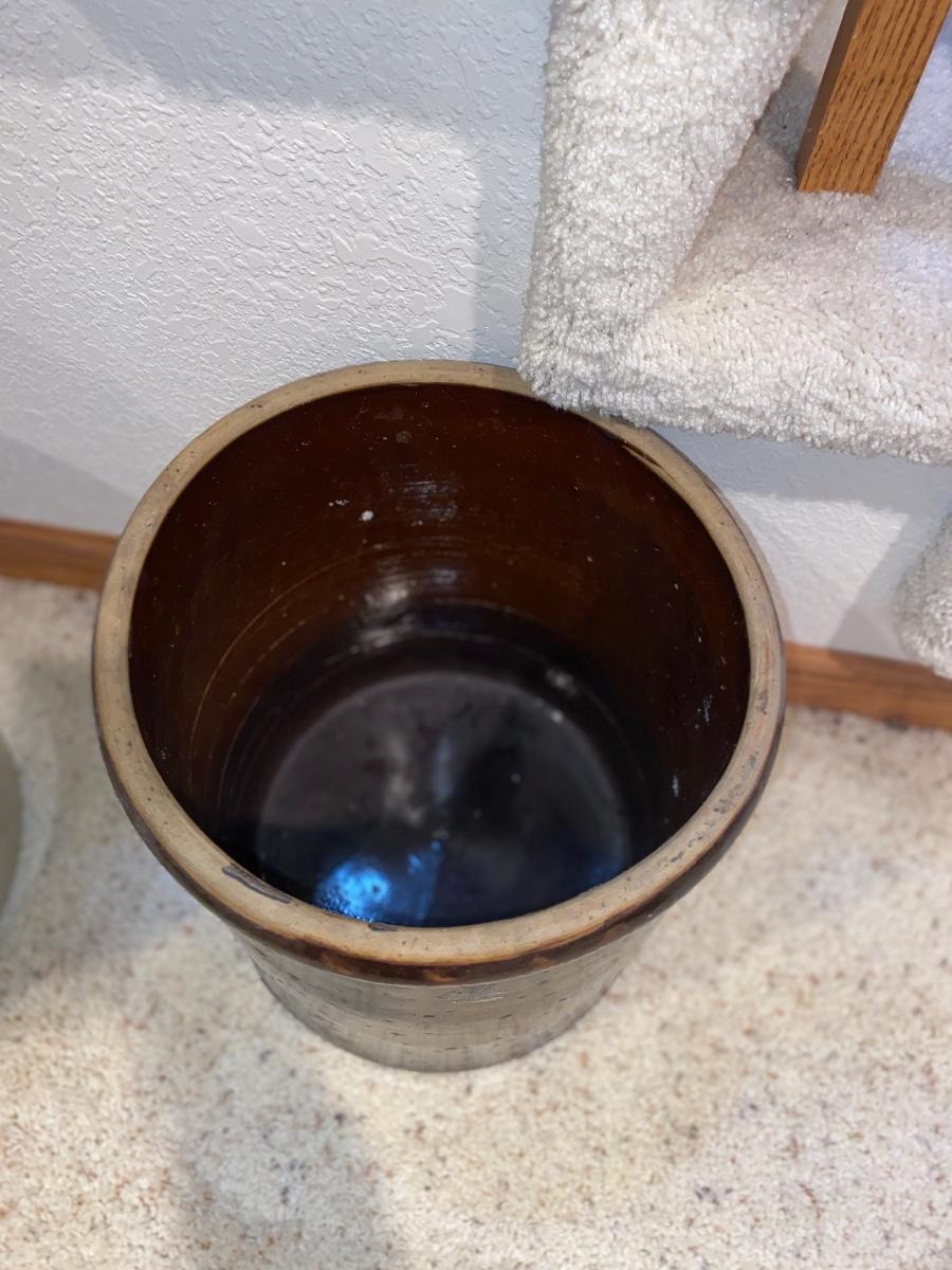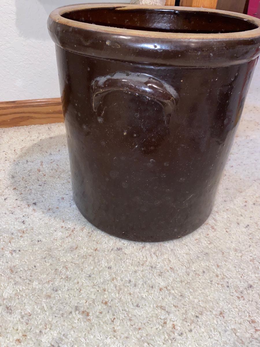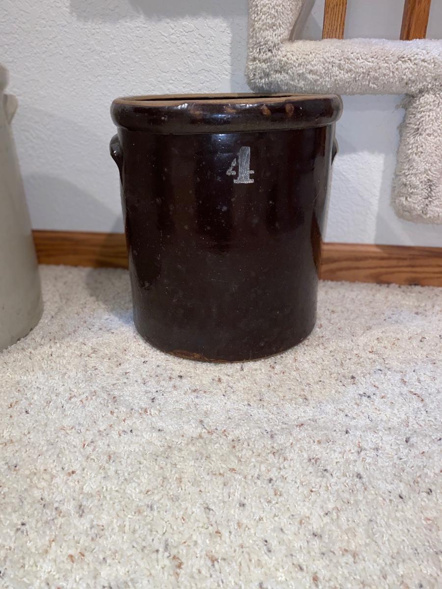 ANTIQUE BROWN STONEWARE GLAZED 4 GALLON CROCK