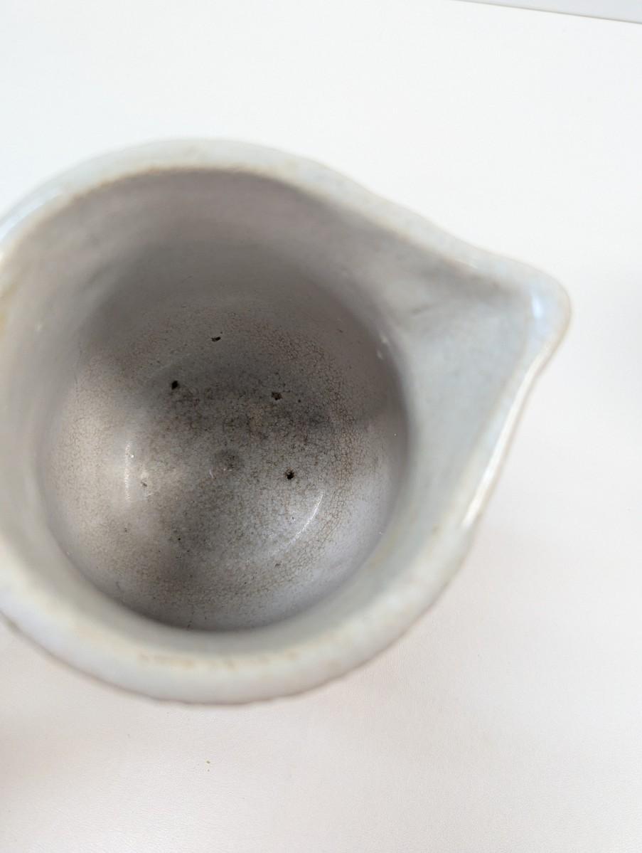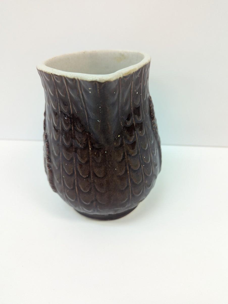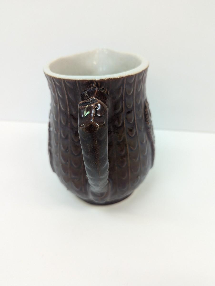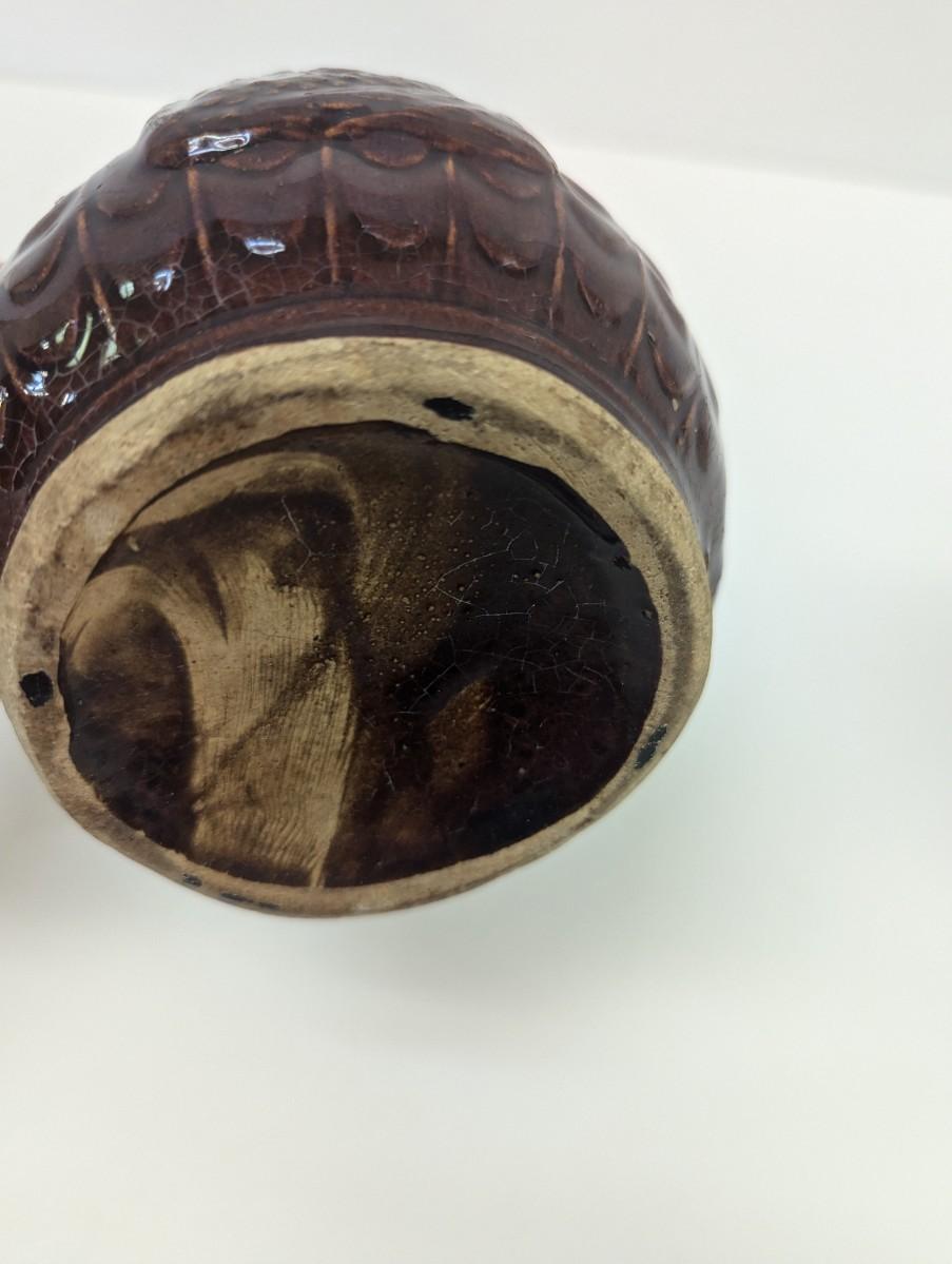 Antique Brown Stoneware Pitcher With Brown Glaze House Relief Pattern