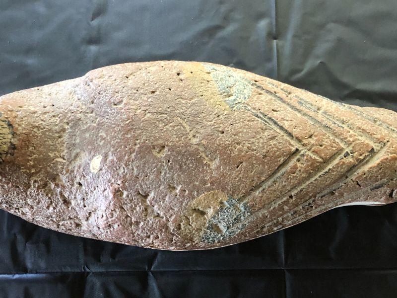 Antique Brown Wood Decoy Duck with Painted Speckled Face and Carved Back