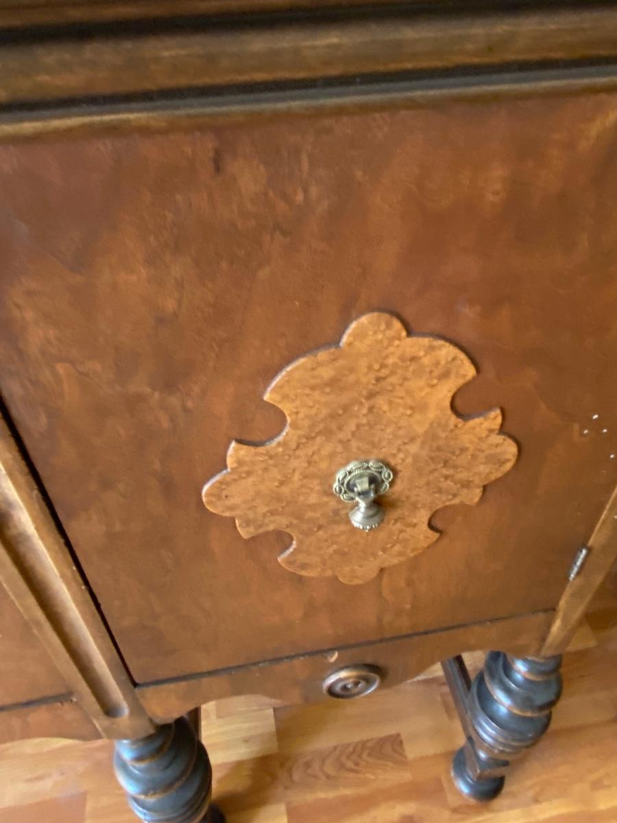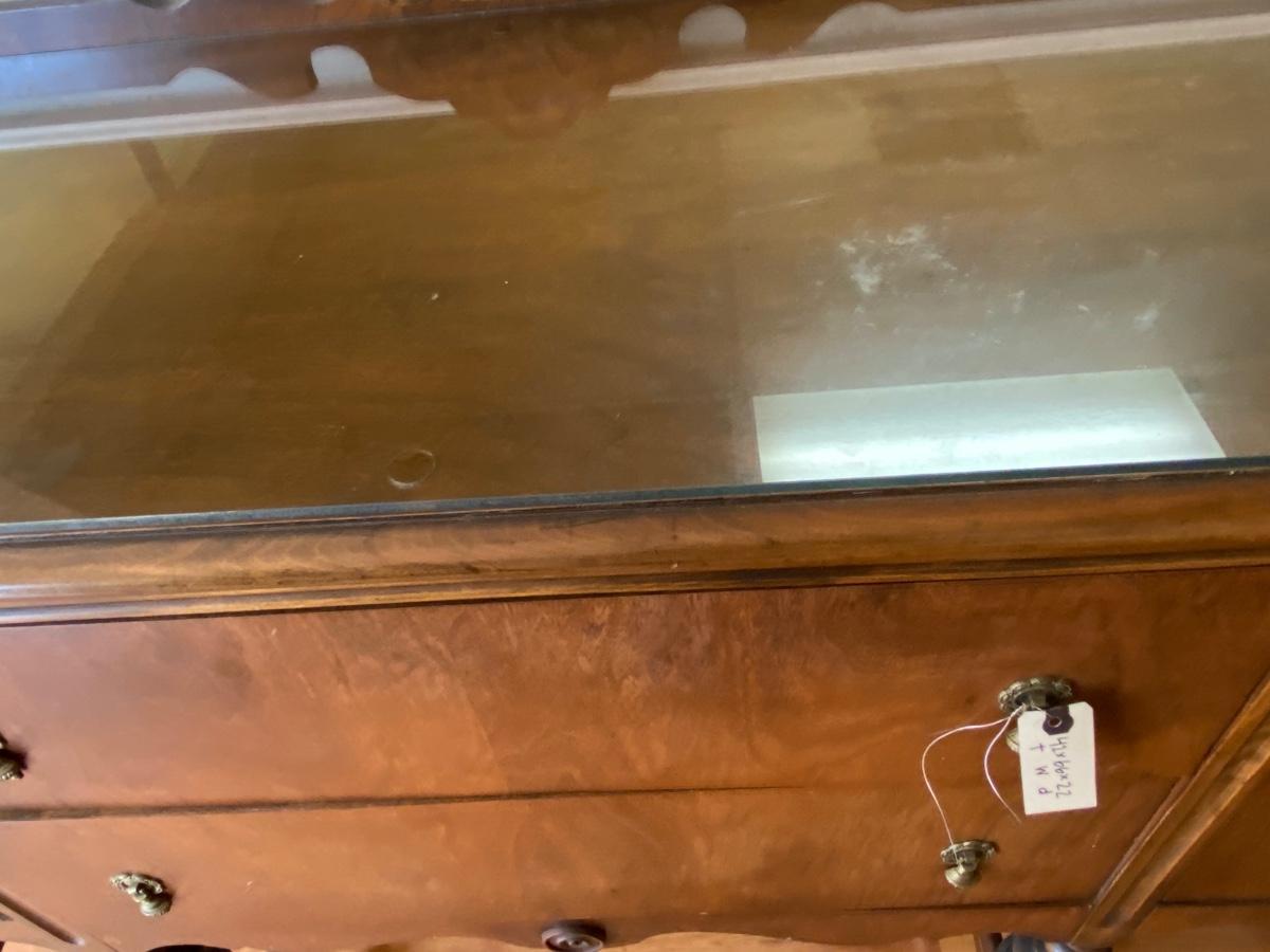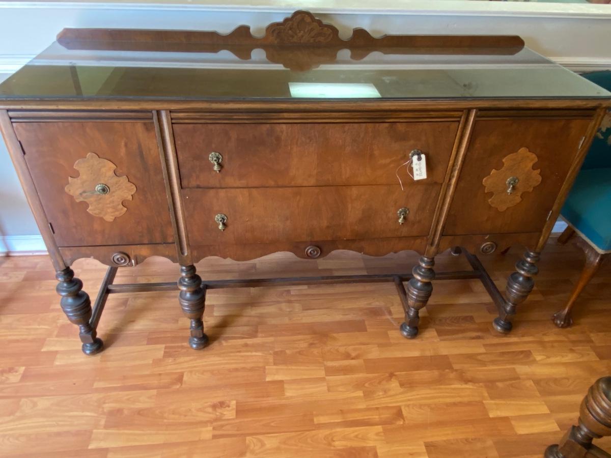 Anitque Buffet, 2 Doors, 2 Drawers, Missing One Pull, Glass Top Protector,Few Chips of Vaneer Misssing See Photos, 42x66x22