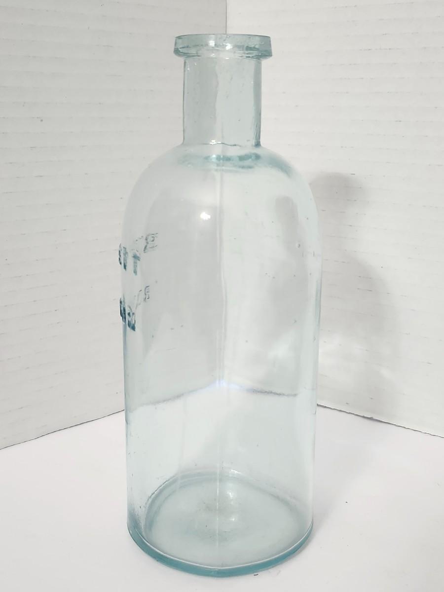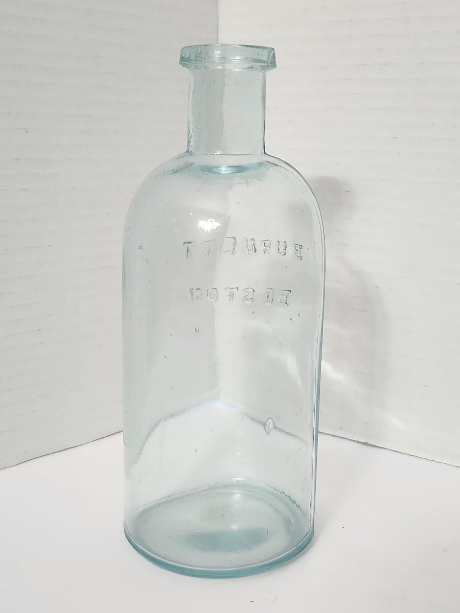 Antique Burnett Boston Embossed Glass Bottle Early American Apothecary Style Clear Aqua Glass
