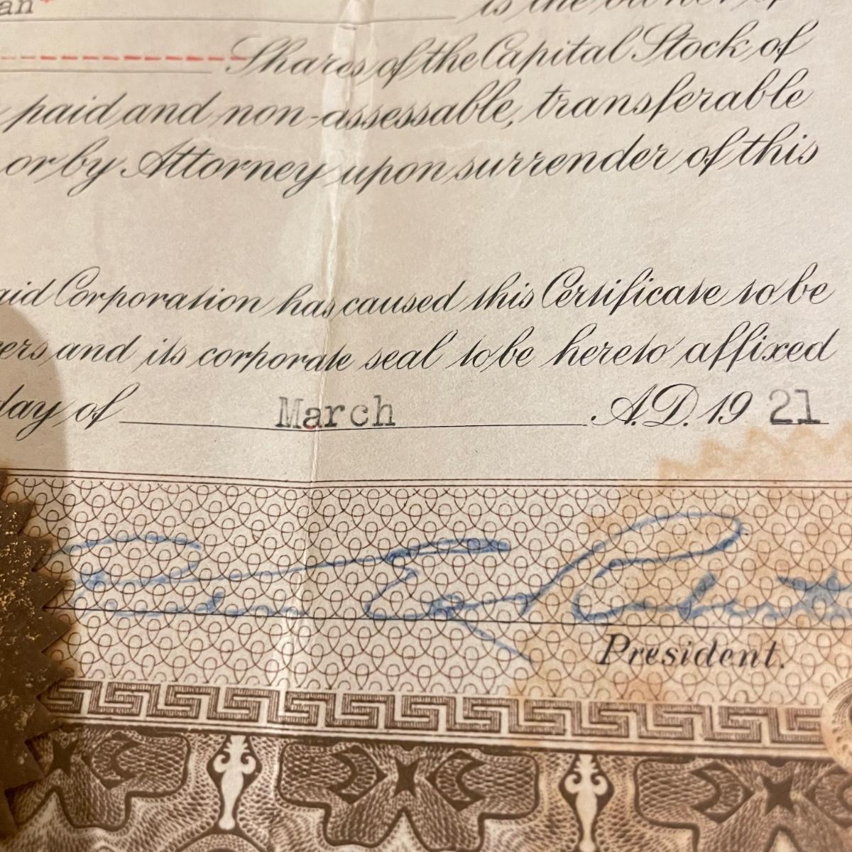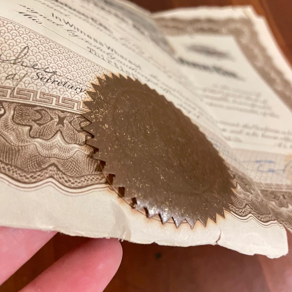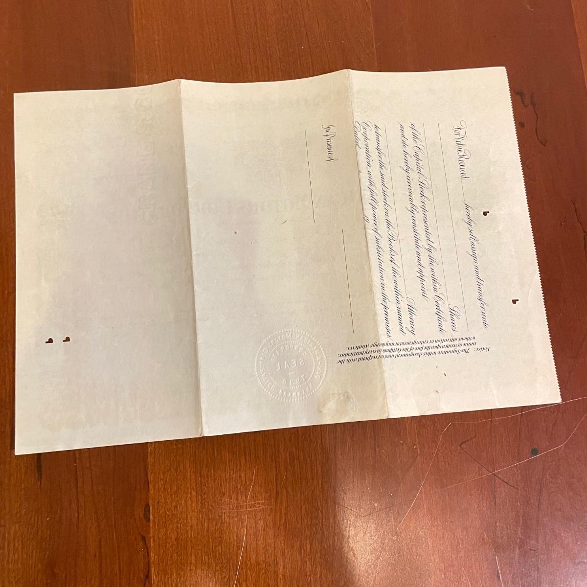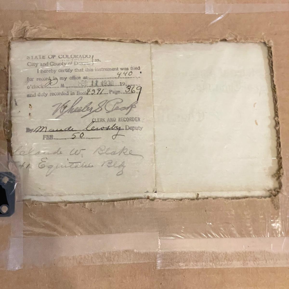 Framed State of Colorado corporation paperwork from 1919 for a corporation called "The Liberal National Party Inc" The frame and panel are plastic. Four stamped stock certificate documents. Lot includes a few other fun vintage business items. See images. Shipping available. Circular sign in group photo is not in this lot.