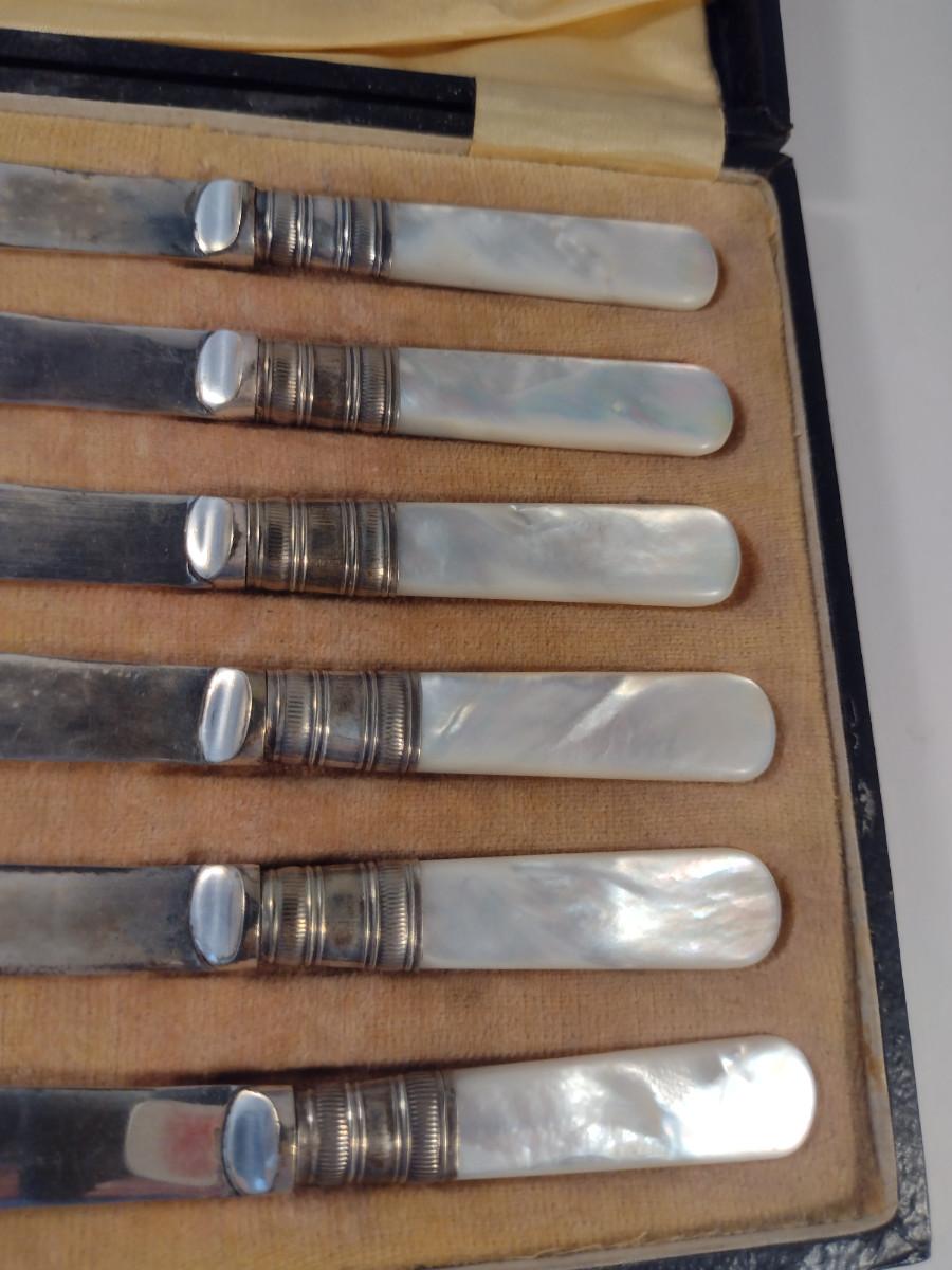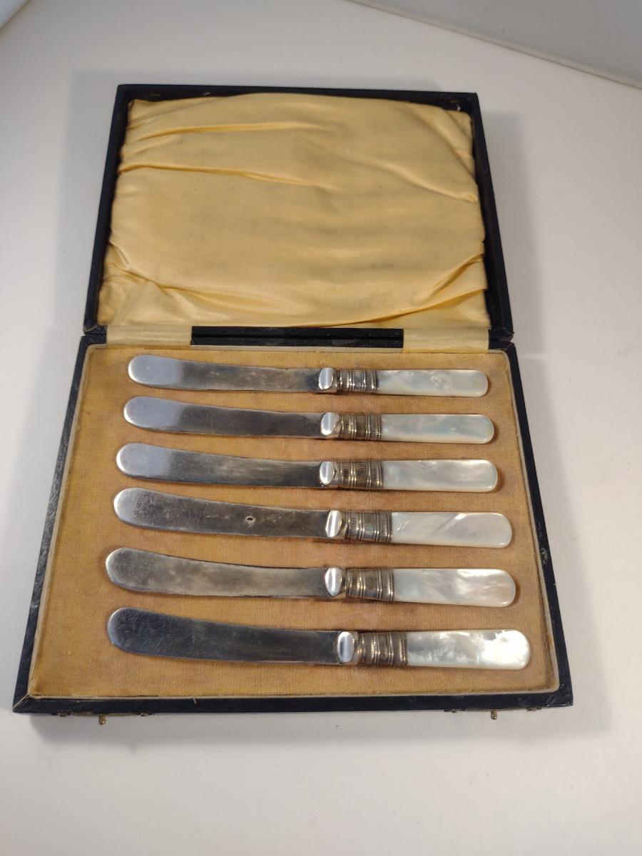 Antique Butter Knives with Mother of Pearl Handles- Storage Case Included