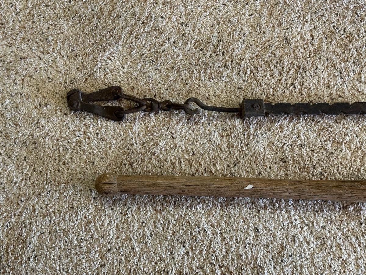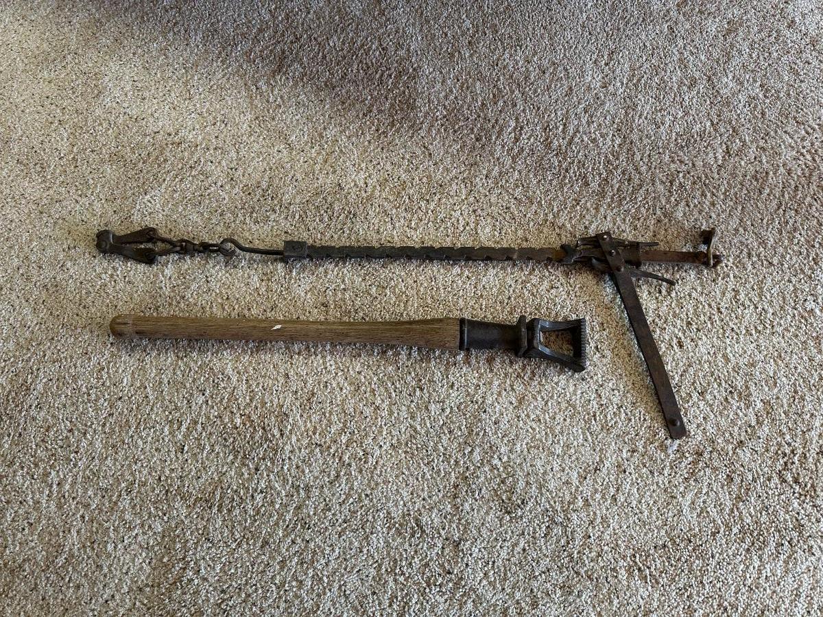 ANTIQUE BUTTERIS AND A BARBED WIRE FENCE STRETCHER?