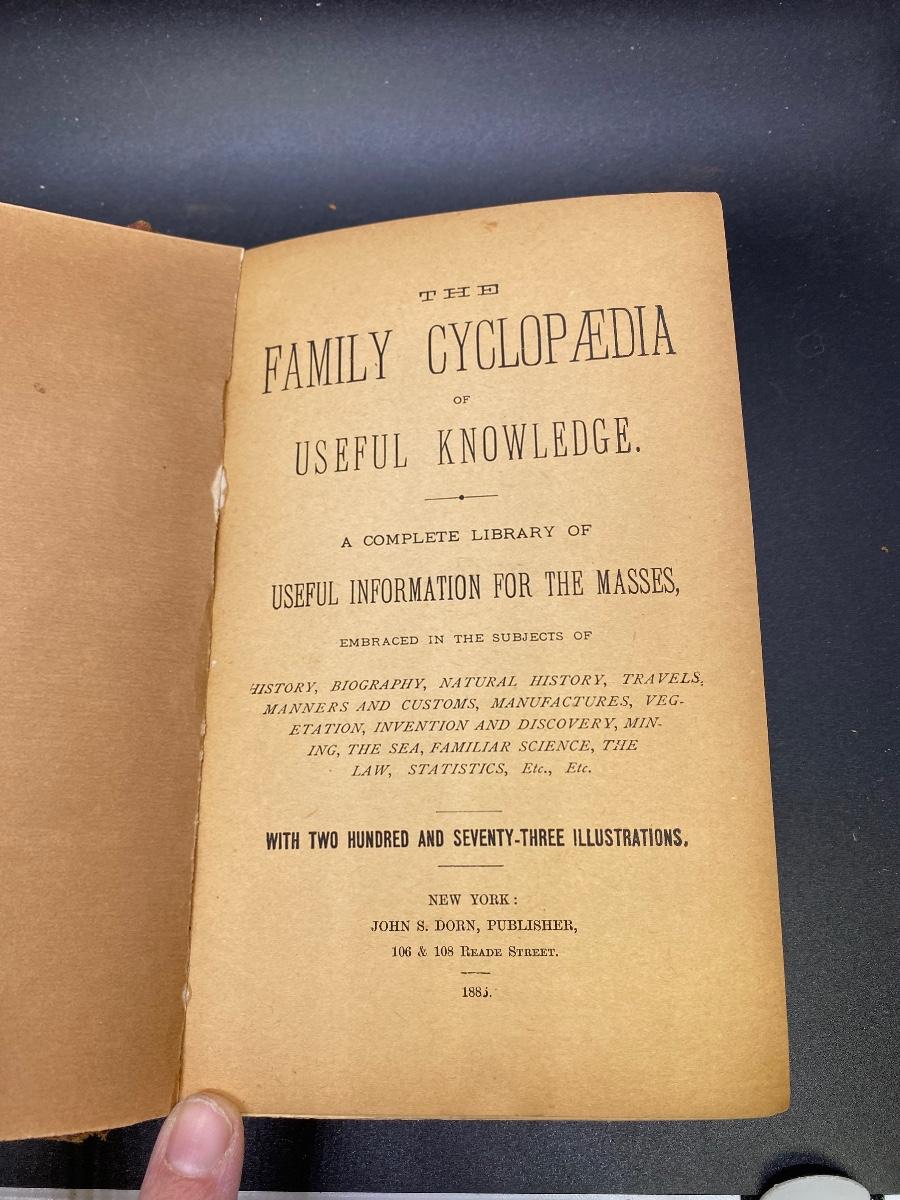 Antique C. 1885 Family Cyclopedia of Useful Knowledge Illustrated Book HC Lupton, the front and back cover is starting to come off from the spine of the book, there is no other significant rips or tears to the book and is in good condition for its age. Check pictures for more details and for sizing.