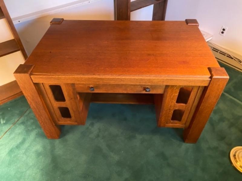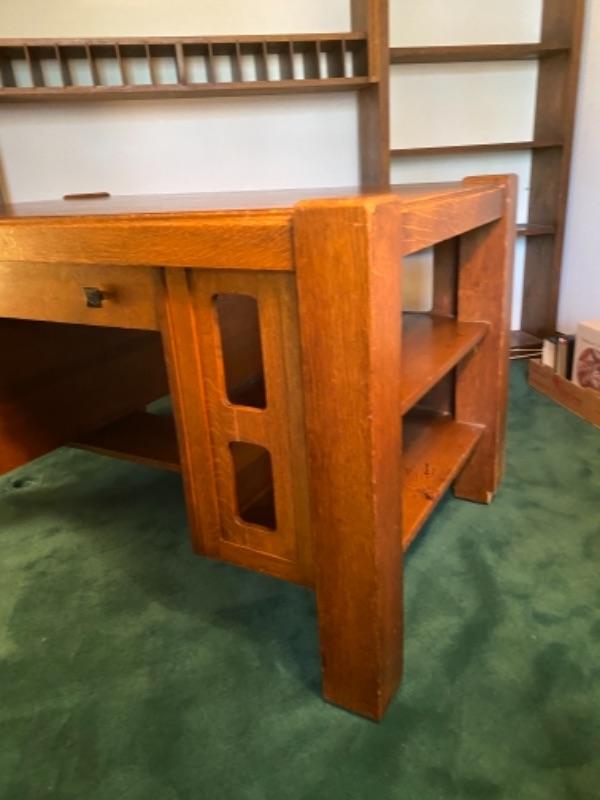Antique c. `1910 Genuine Craftsman Mission Desk w Side Bookshelves