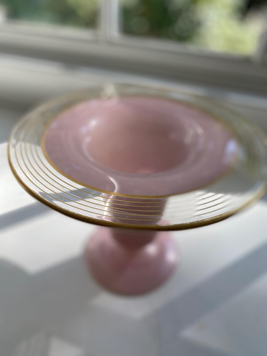 ANTIQUE c. 1920 Westmoreland Glass Pink Case Vase Flared Gold Rim
