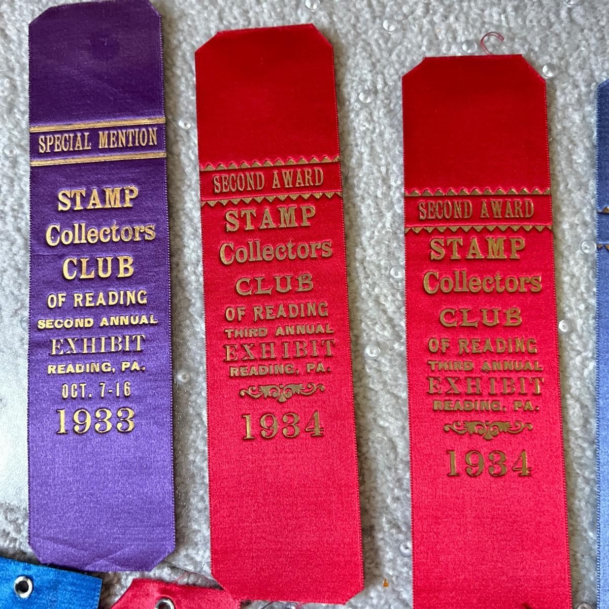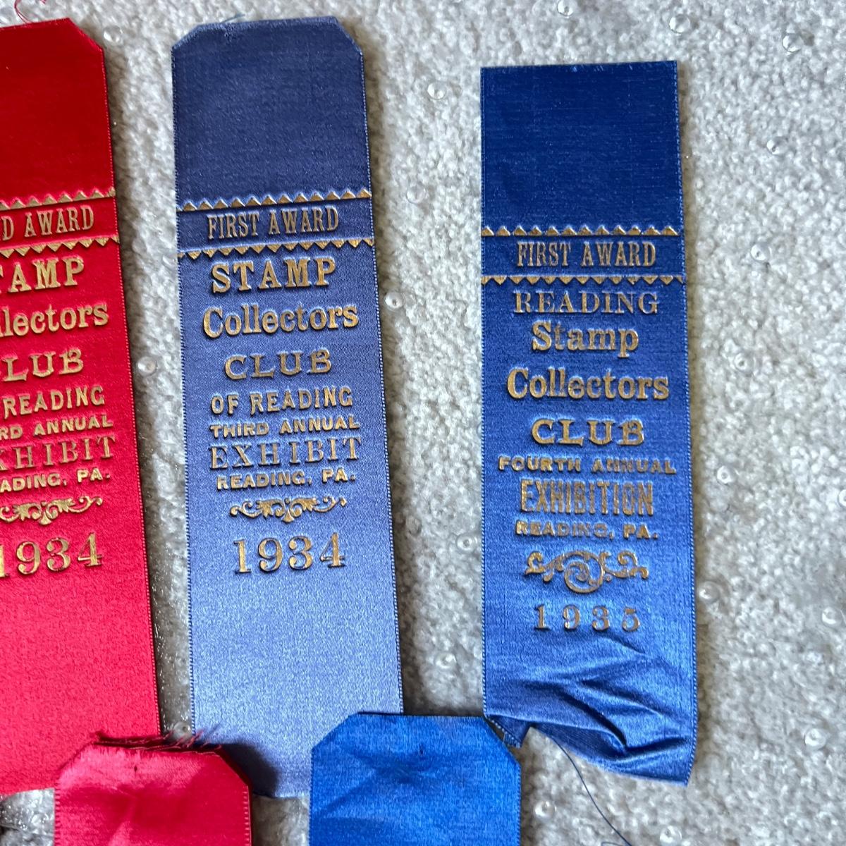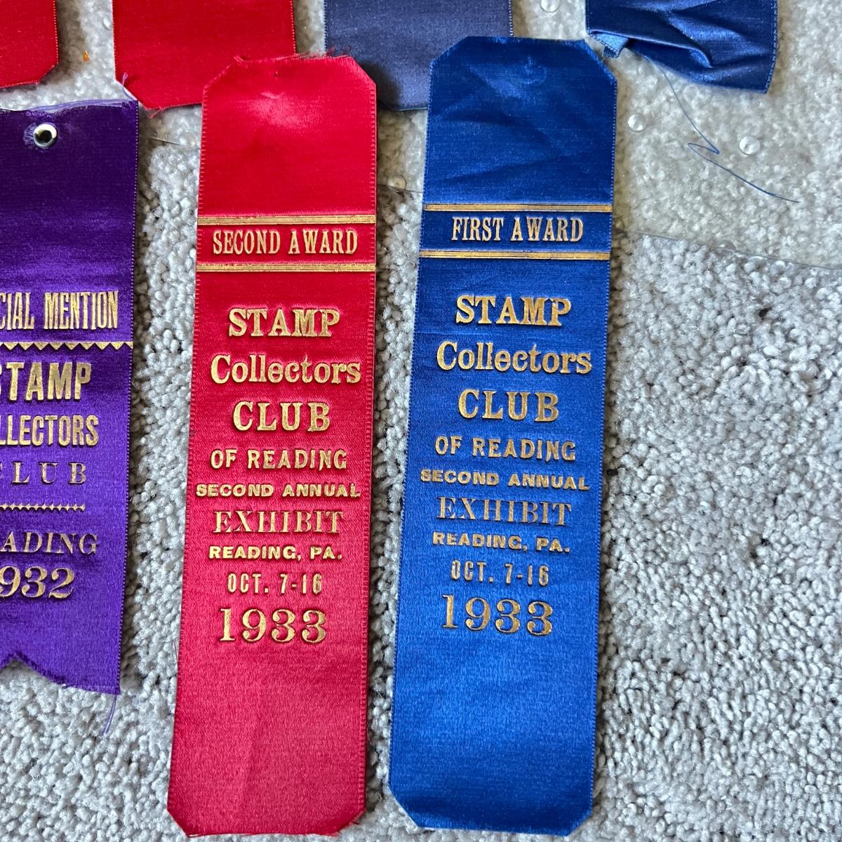 Antique c. 1933-1935 Silk Ribbon Stamp Collecting Awards