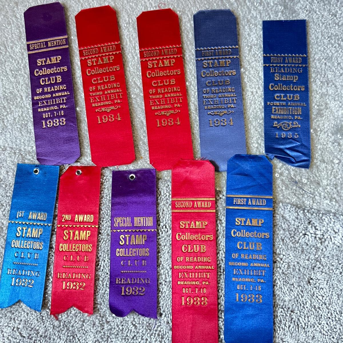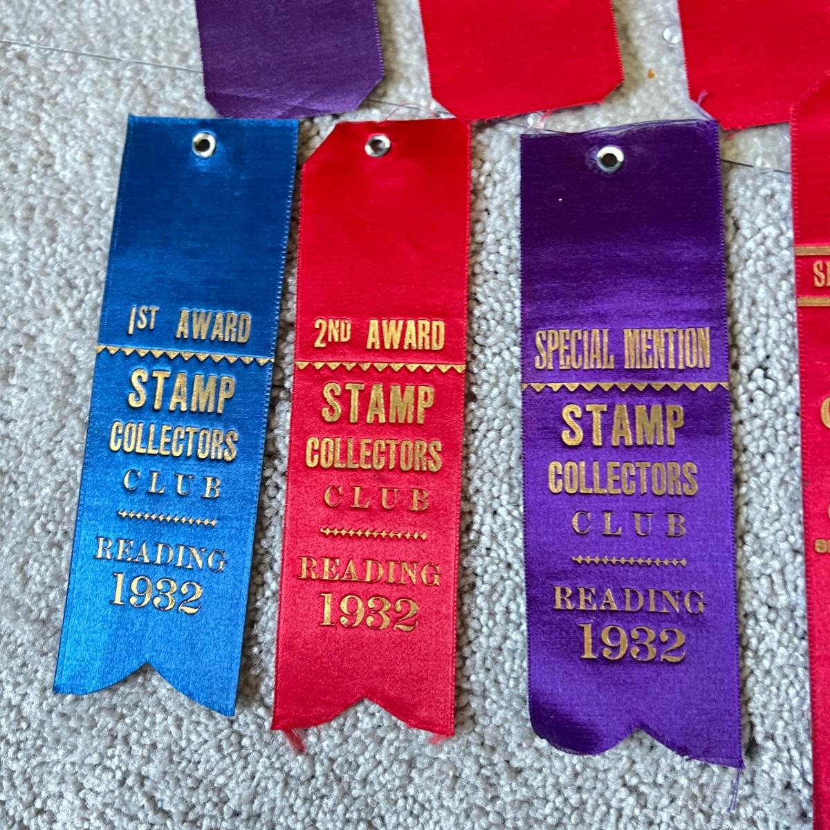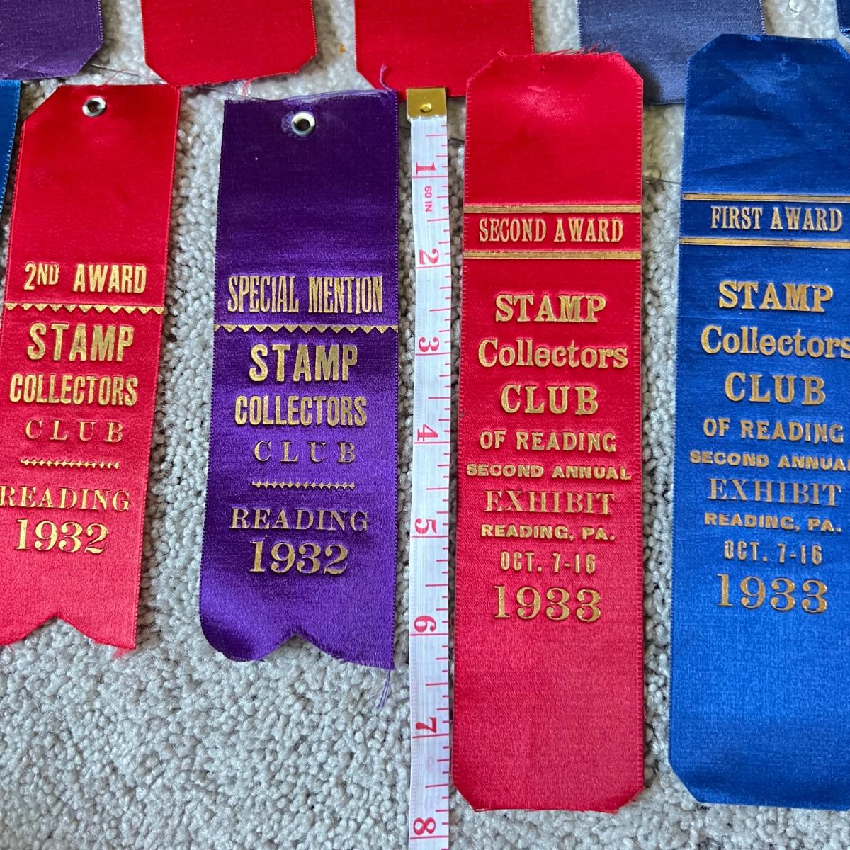 Antique c. 1933-1935 Silk Ribbon Stamp Collecting Awards