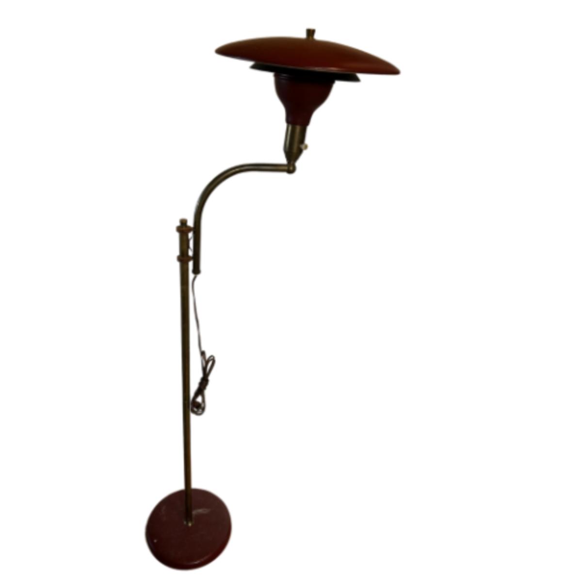 Antique c. 1940s Sight “Flying Saucer” Red Floor Lamp by M.G. Wheeler