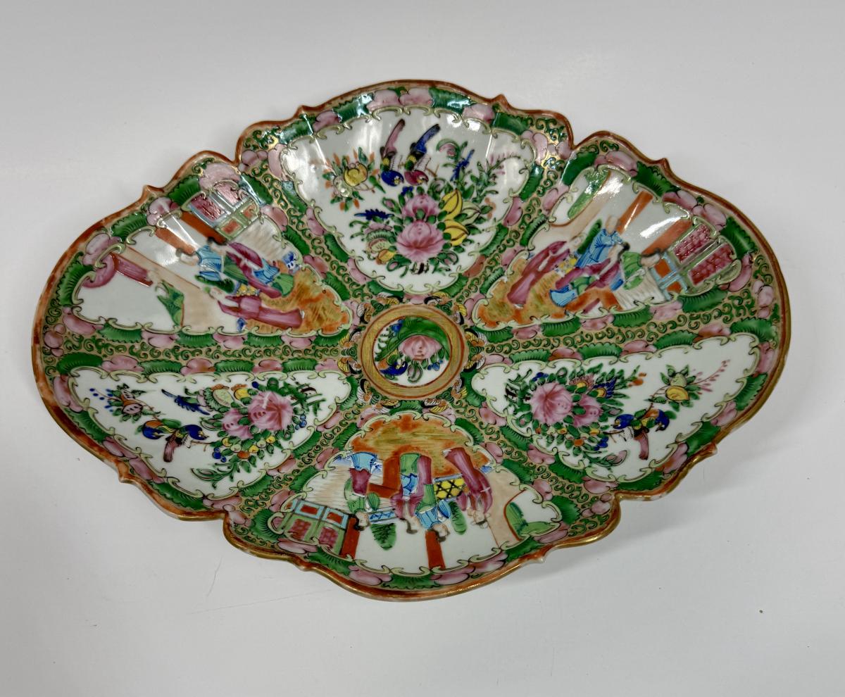 Antique c1880 Large Oval Chinese Export Rose Medallion Footed Centerpiece Bowl