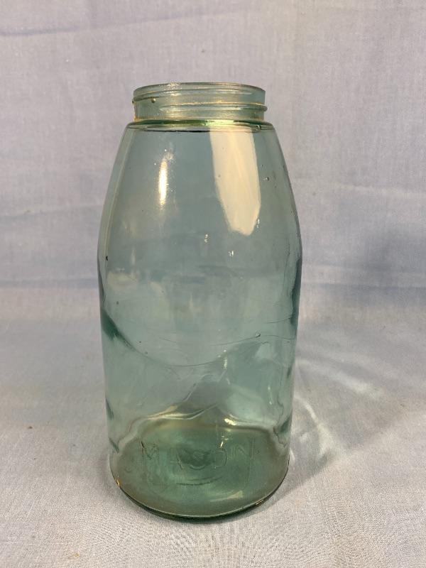 Antique c1910 Blue Ball MASON Jar 1/2 gallon Air Bubbles Wavy