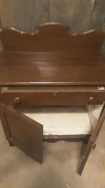 HAS ONE DRAWER AND 2 DOOR STORAGE CABINET,