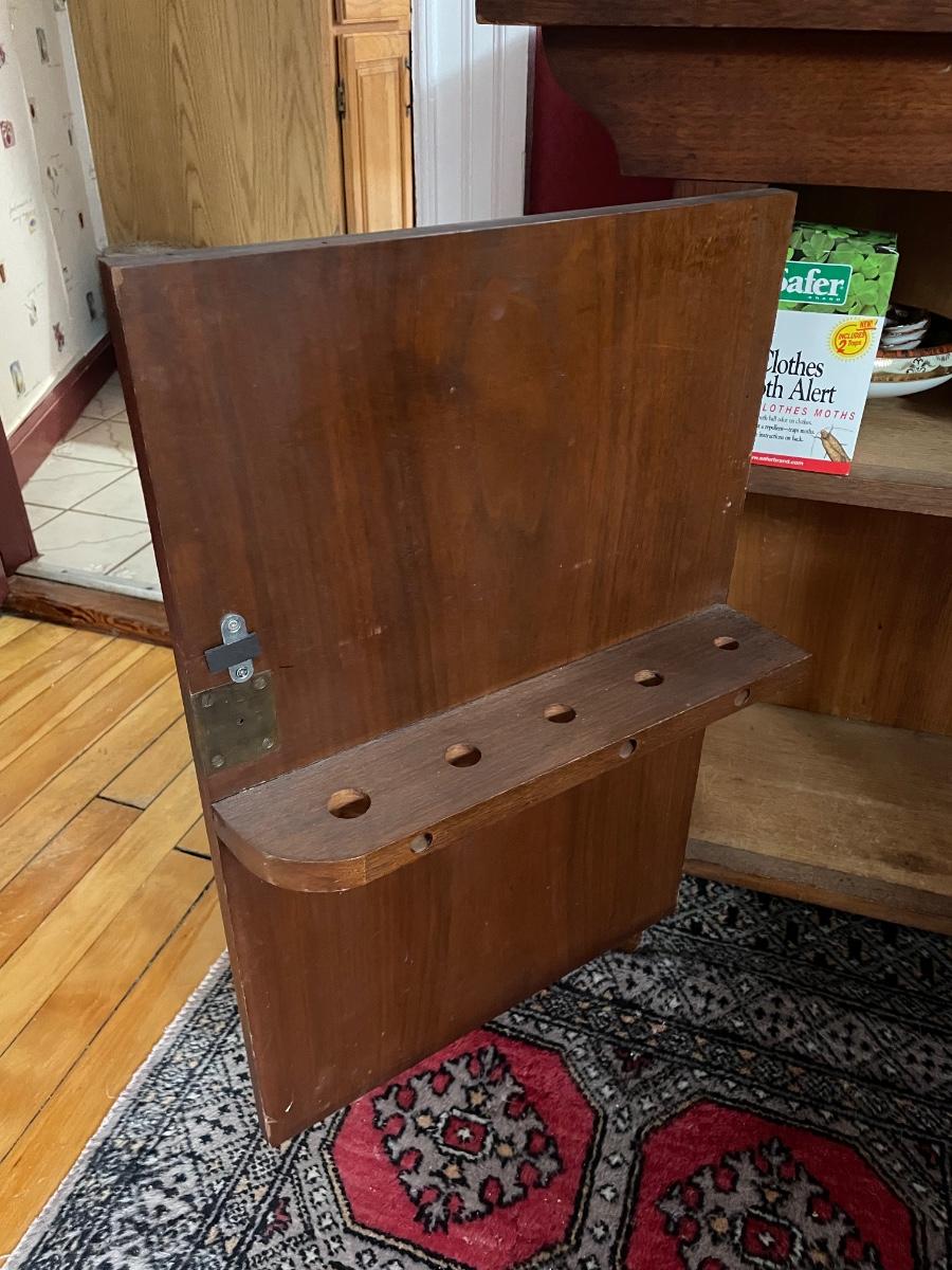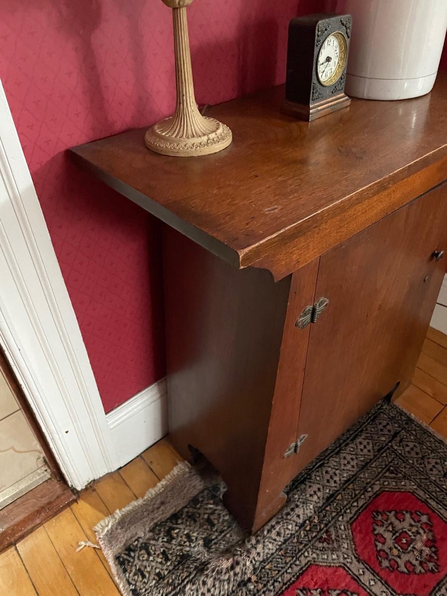 Looks to be antique, maybe vintage. May have been a smoker’s cabinet. 28.5” x 14” x 30” high.