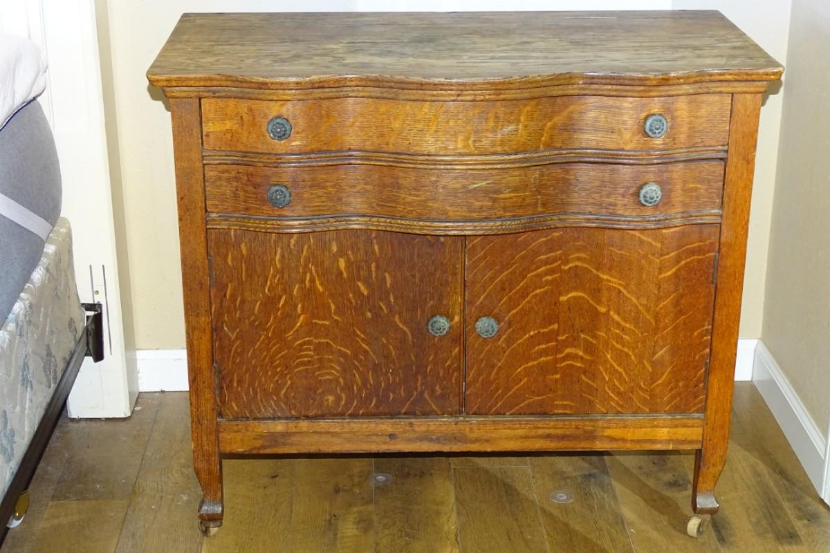 Antique Oak Washstand Server Chamber Cabinet