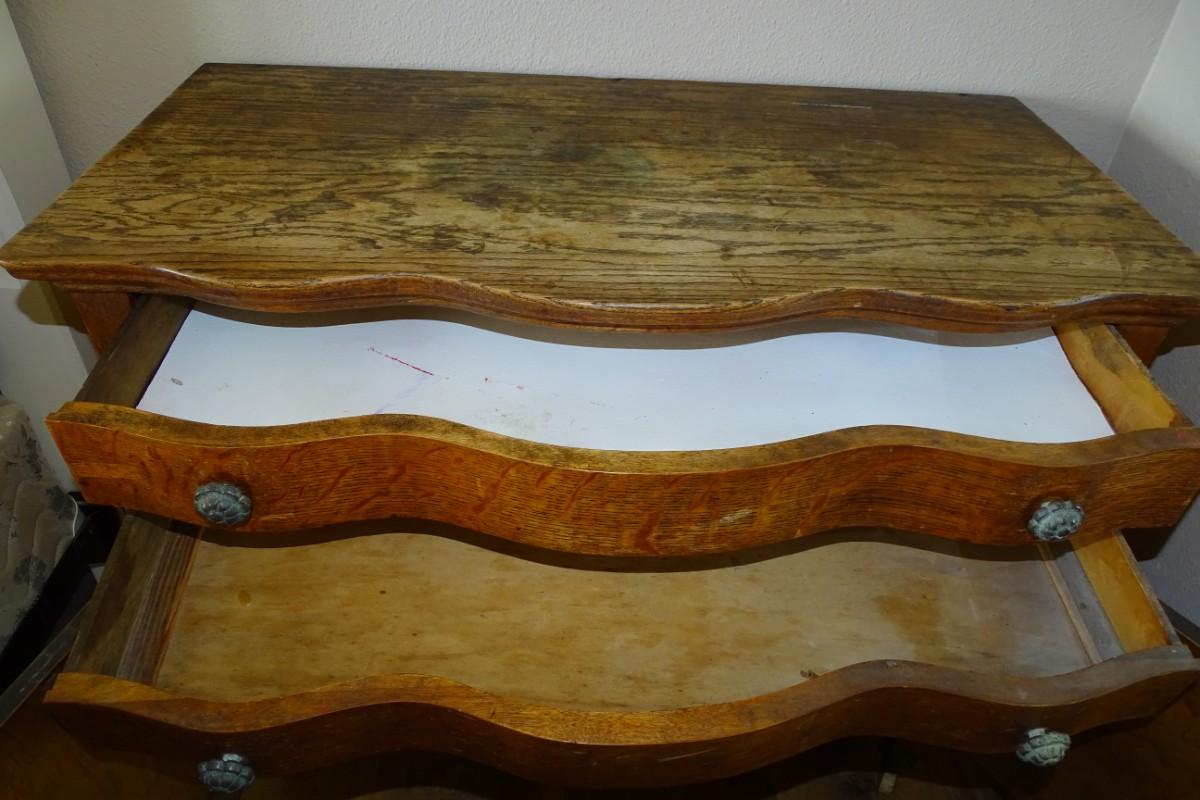 The top two drawers are curved or bowed out.