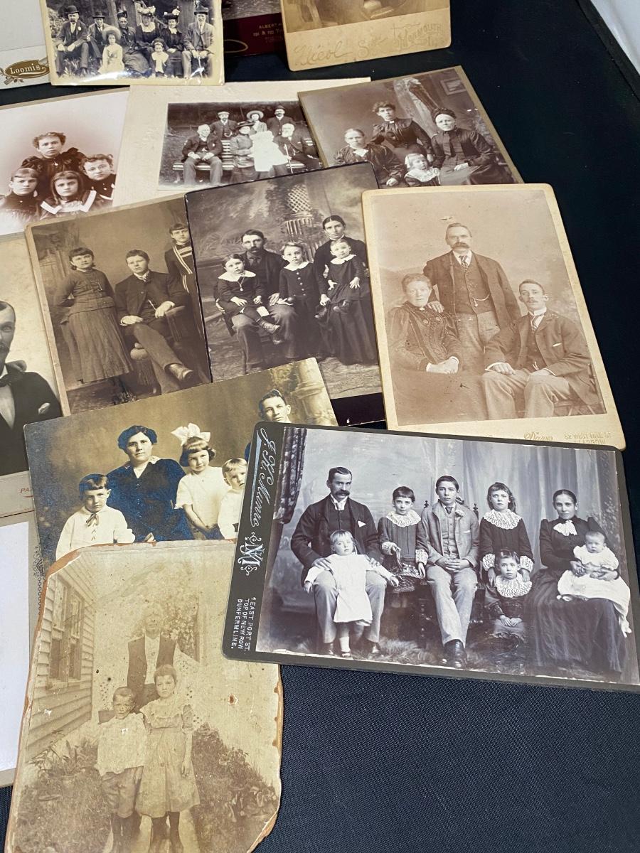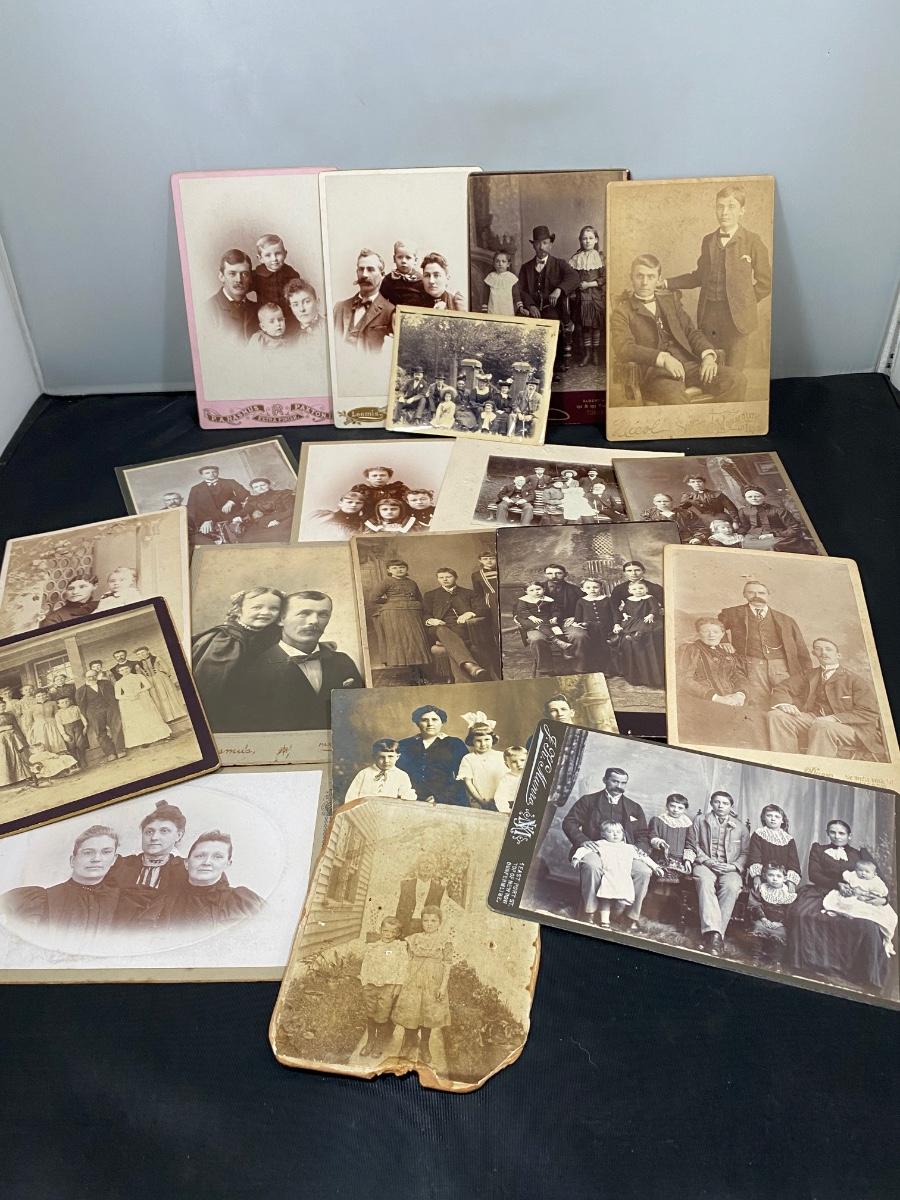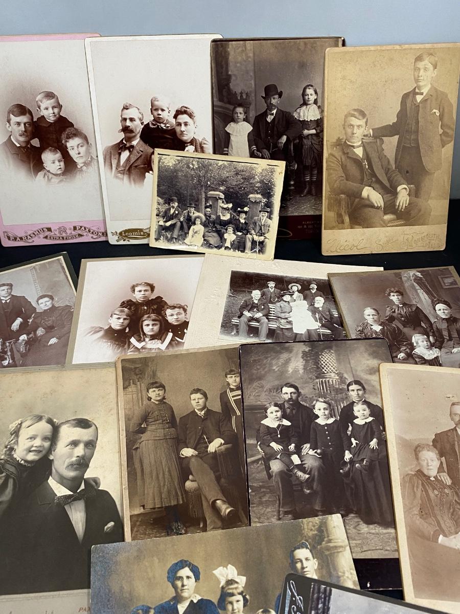 Mixed lot of antique cabinet cards featuring families. Includes all the photos shown.