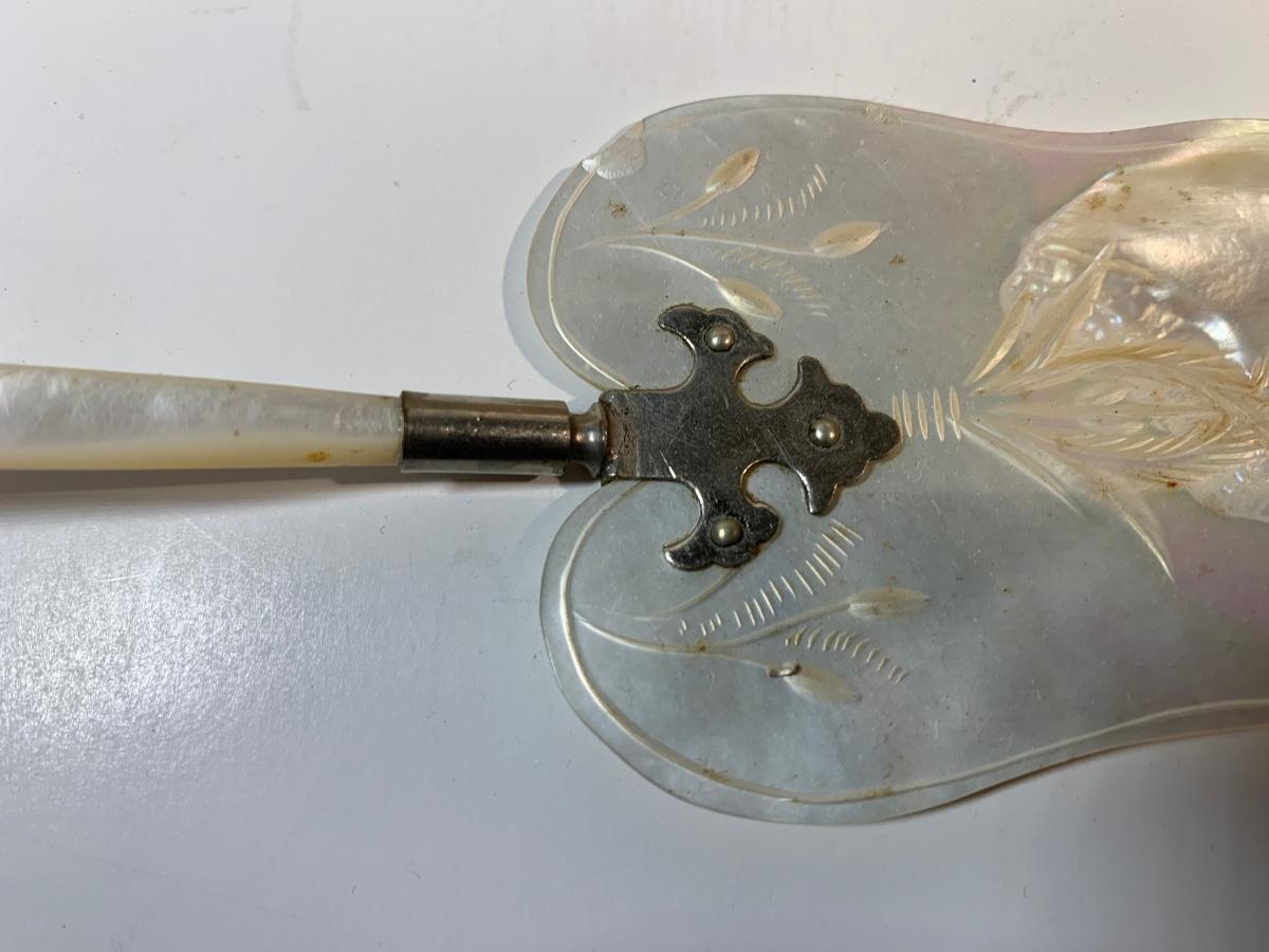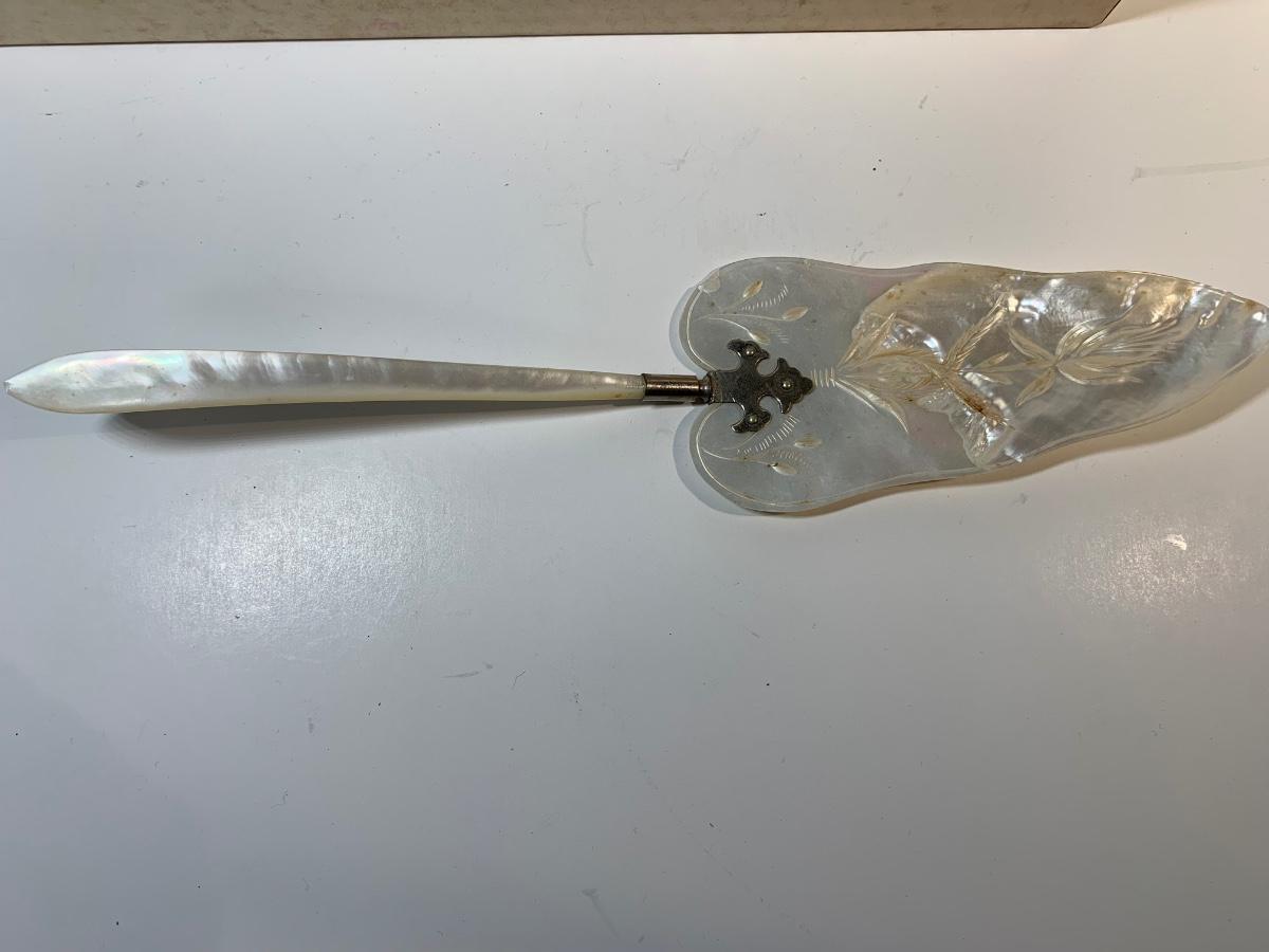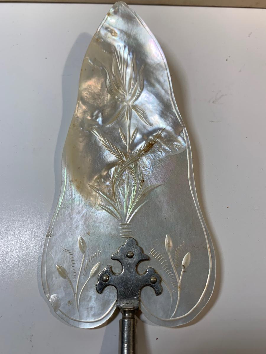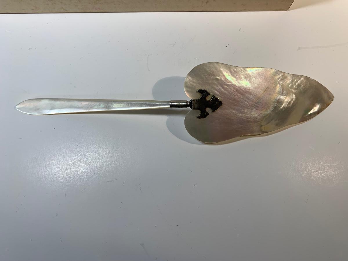 Complete with its original box this cake slice is silver and mother of pearl which is decorated with flowers