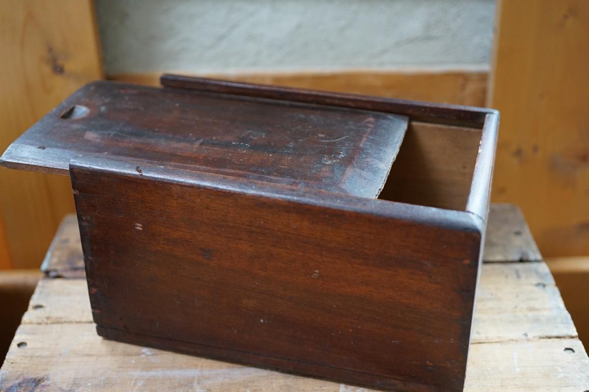 ANTIQUE CANDLE BOX W/ SLIDING LID OF HAND CRAFT