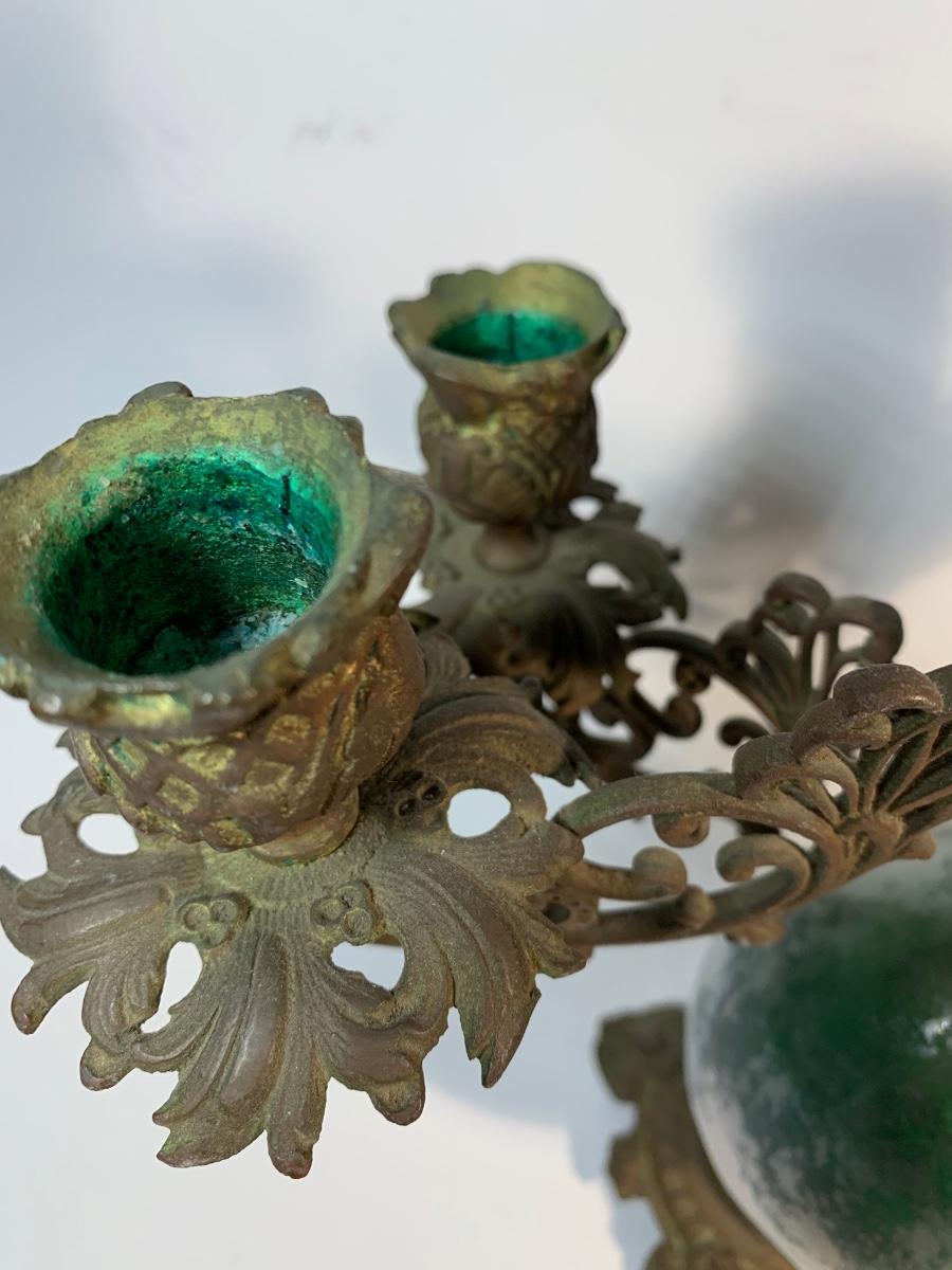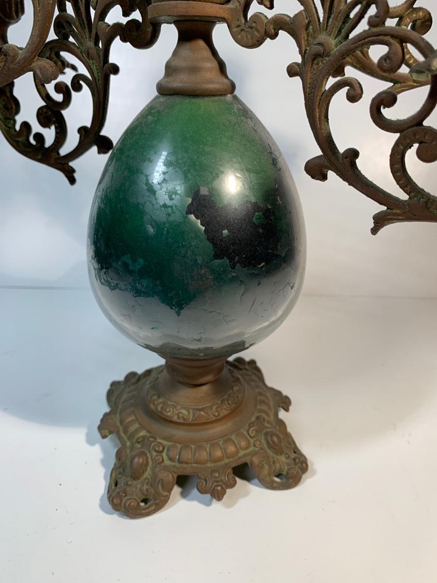 Antique candlestick with 4 metal arms and globe center in the style of Tiffany