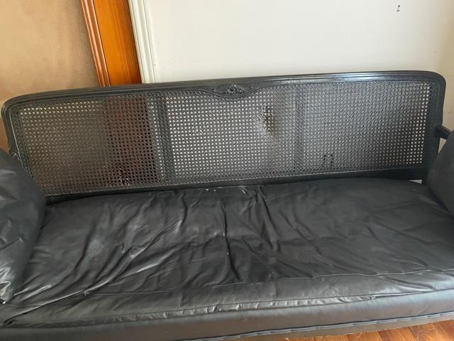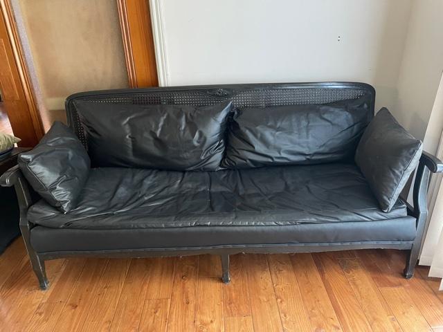 Antique Cane-Back Settee with Leather Cushions. Cane needs repair (we have a great guy in Mandeville, LA). Leather seat and pillows are removable.