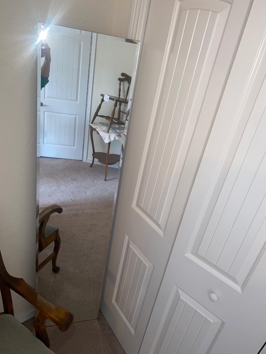 CAPTAINS CHAIR AND BEVELED MIRROR