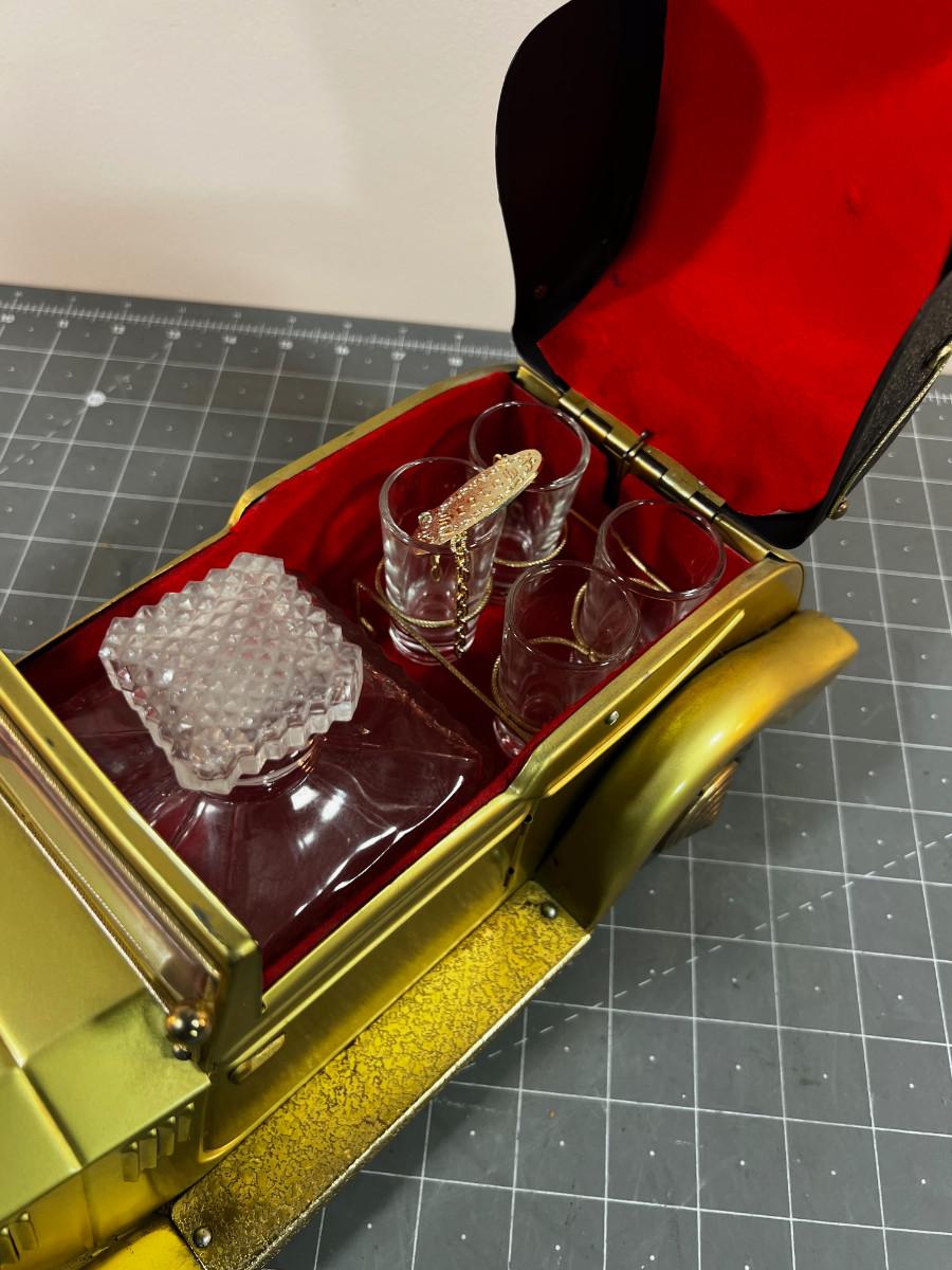 Antique Car Rolls Royce Decanter Liquor shot glasses