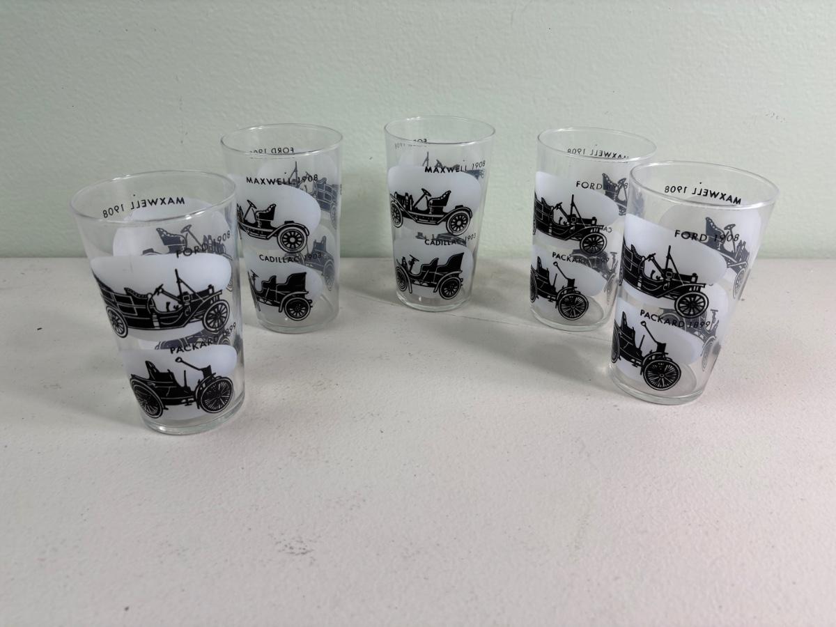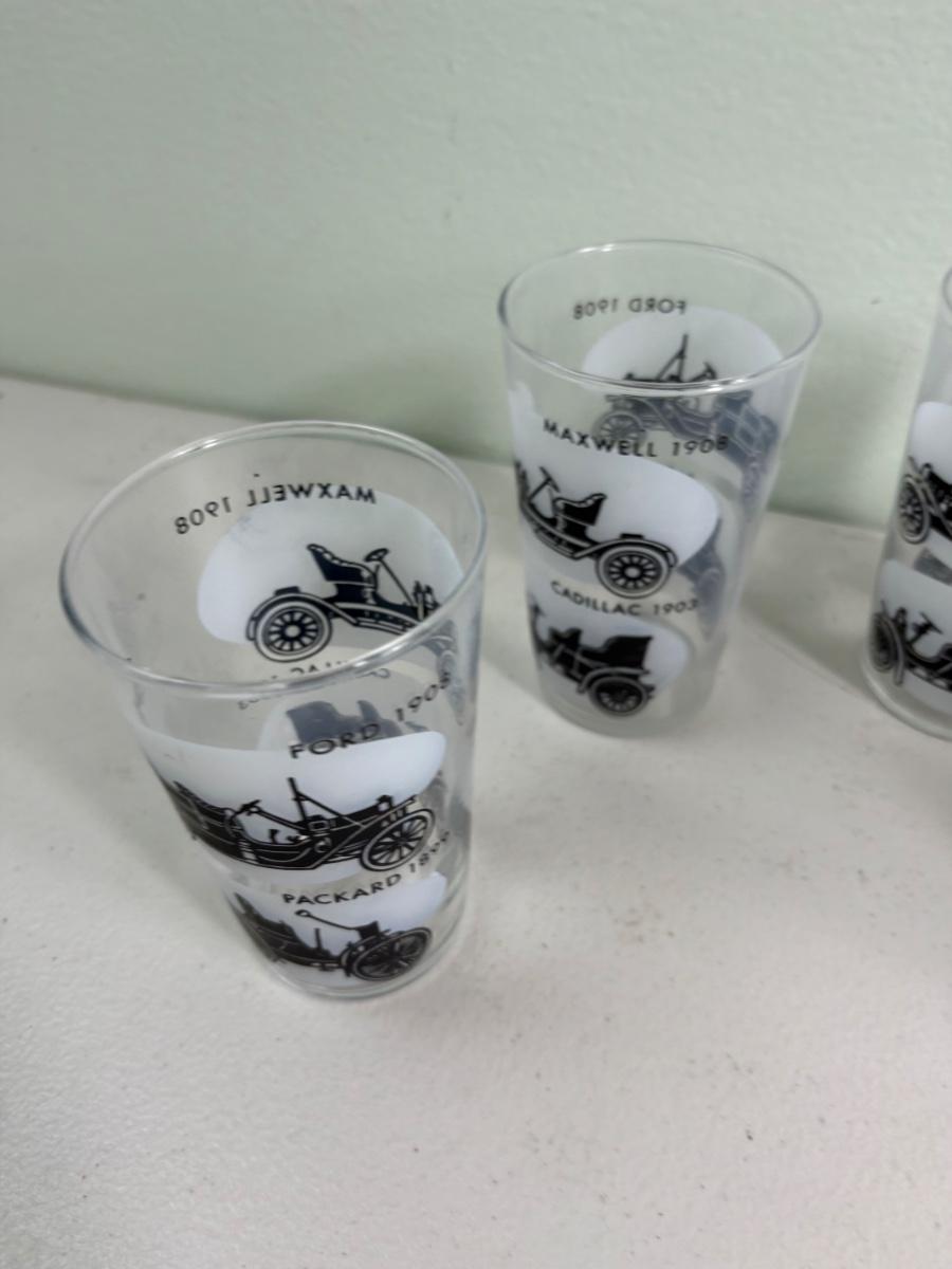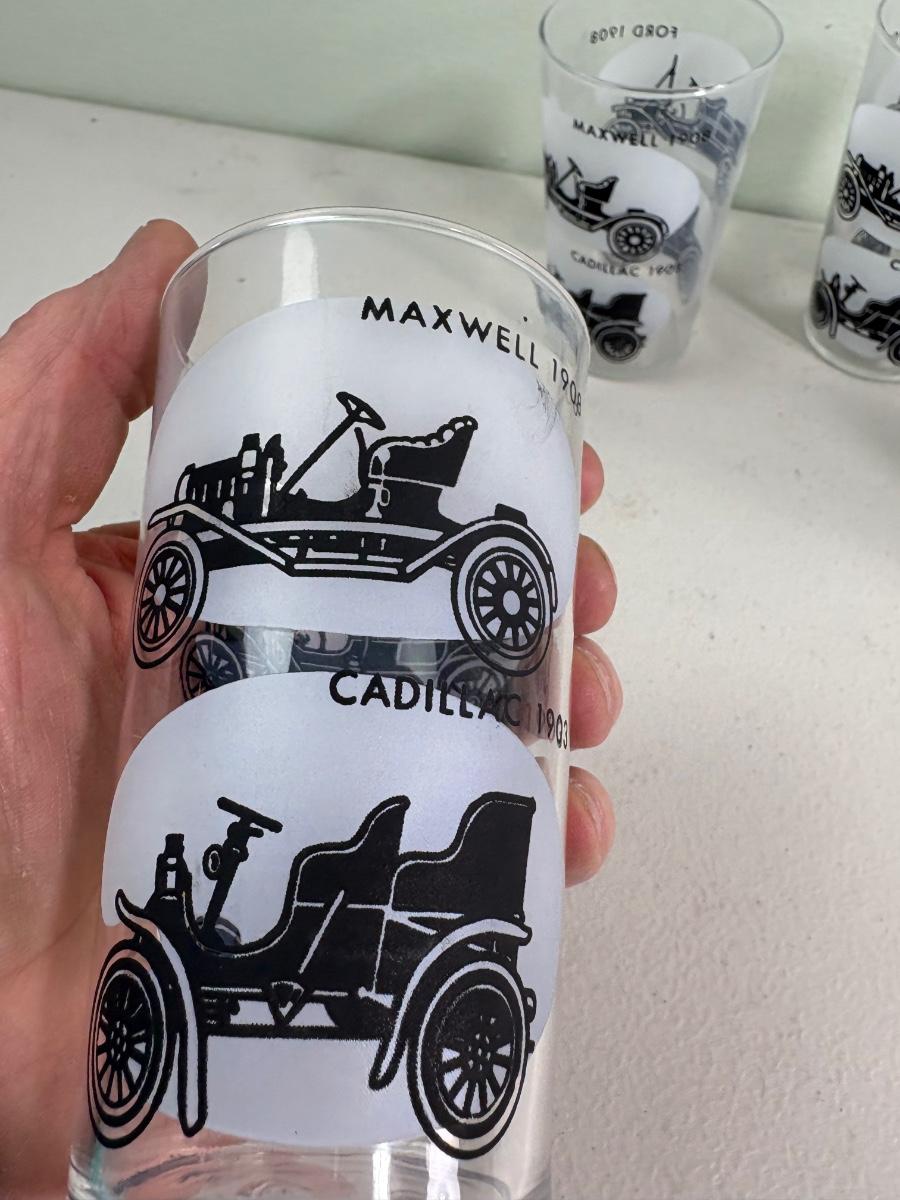 Antique Car Tumblers (Cute) Old Timey , BY FEDERAL GLASS