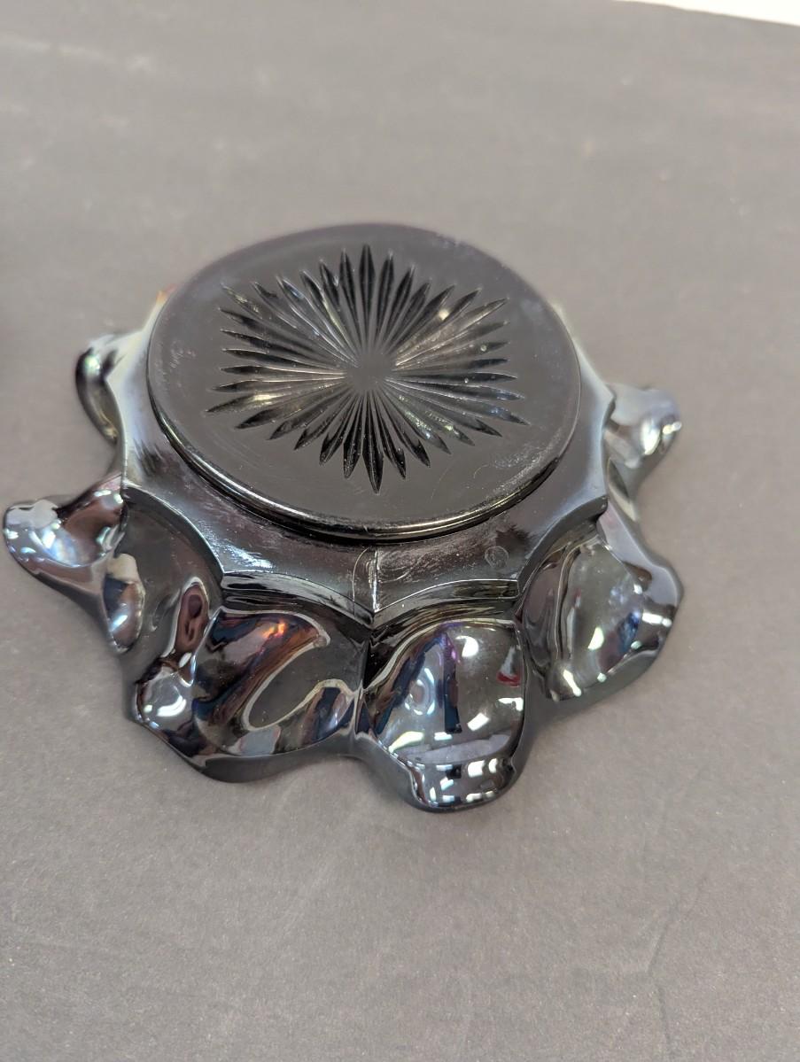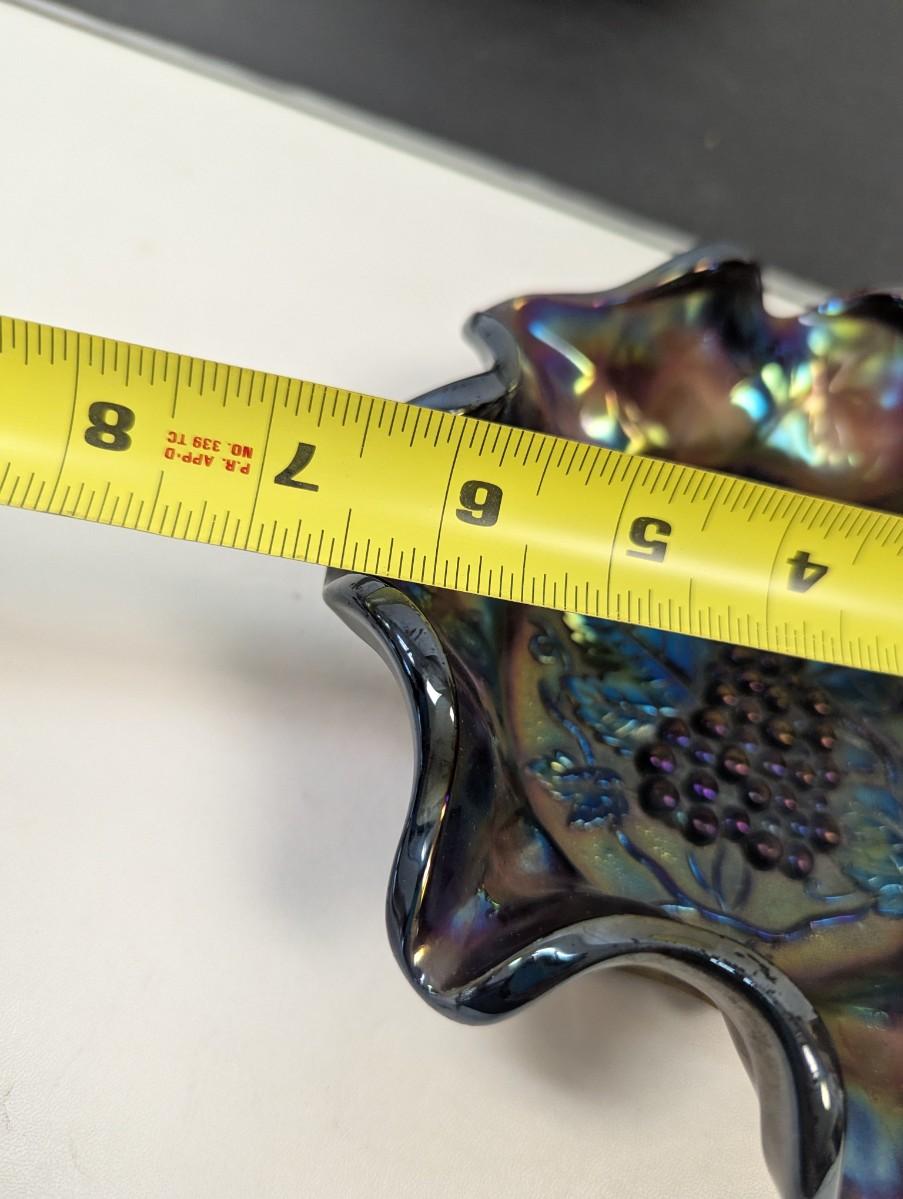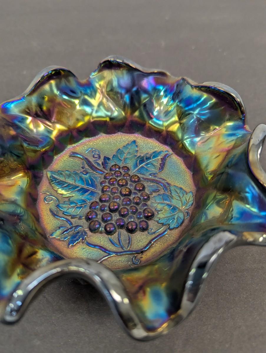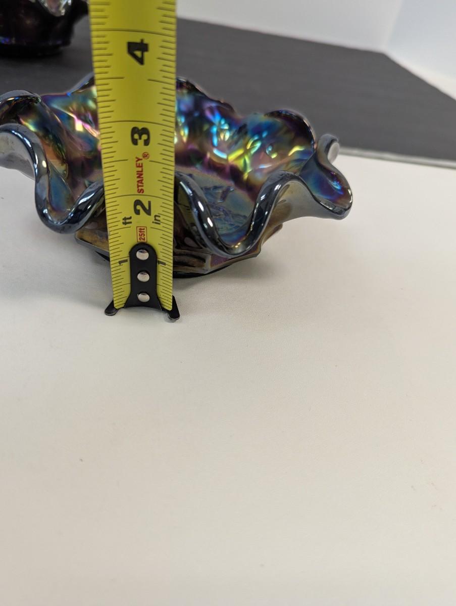 Antique Carnival Heavy Glass Grape By Imperial Radium Ruffled Candy Dishes #9