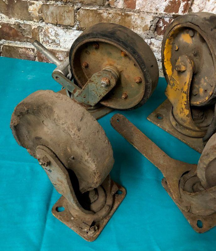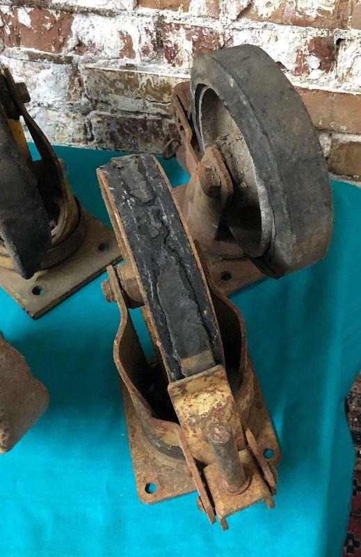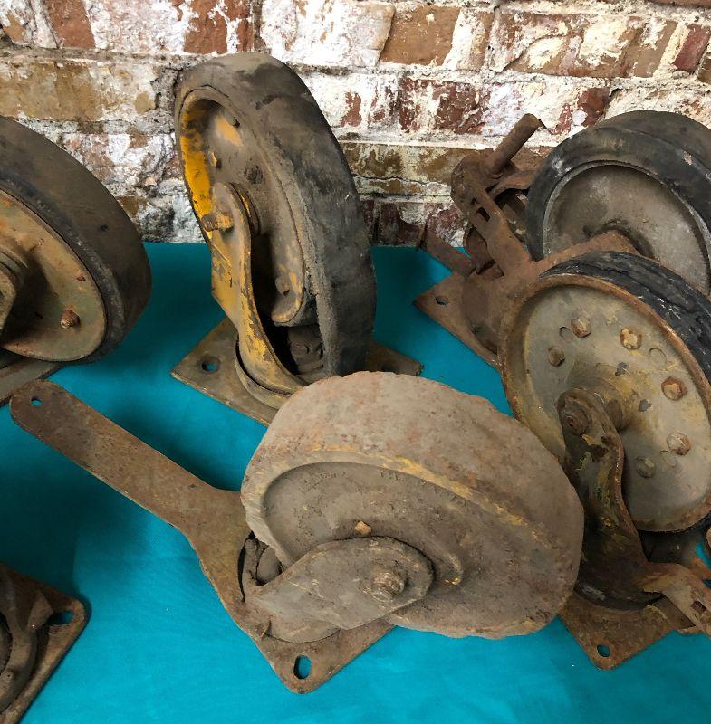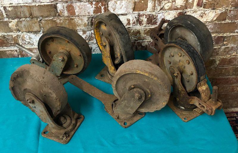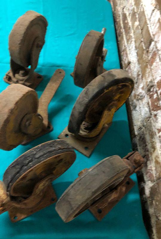 Here is a lot of antique industrial cart and caster wheels...6 and 8 inch size...