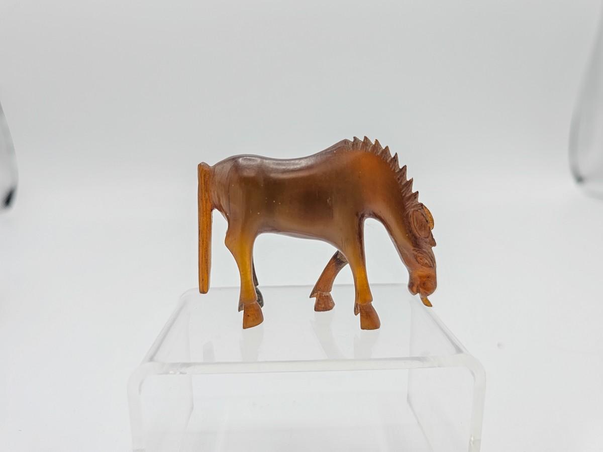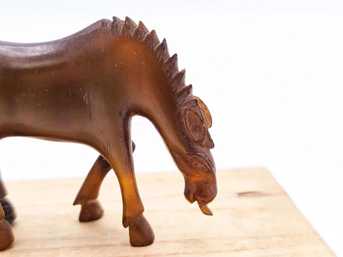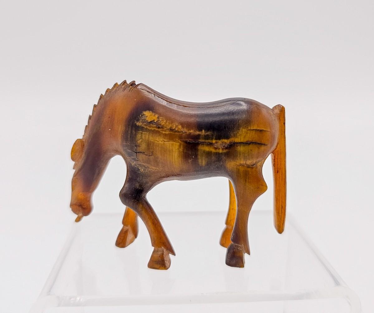 Antique horse or mule, carved horn. Please see photos for measurements.