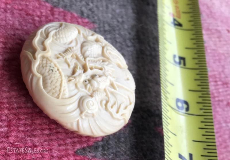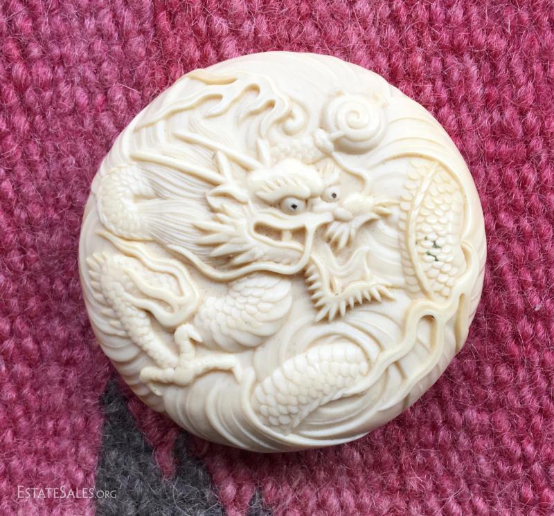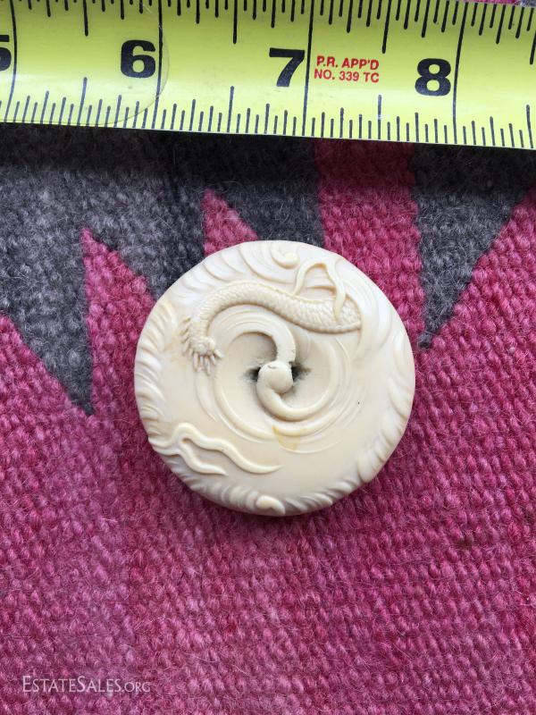 Antique Carved Ivory Button Chinese Dragon measures 2" in diameter.
