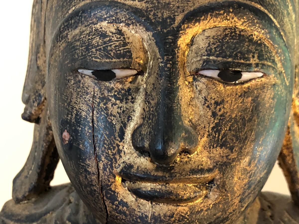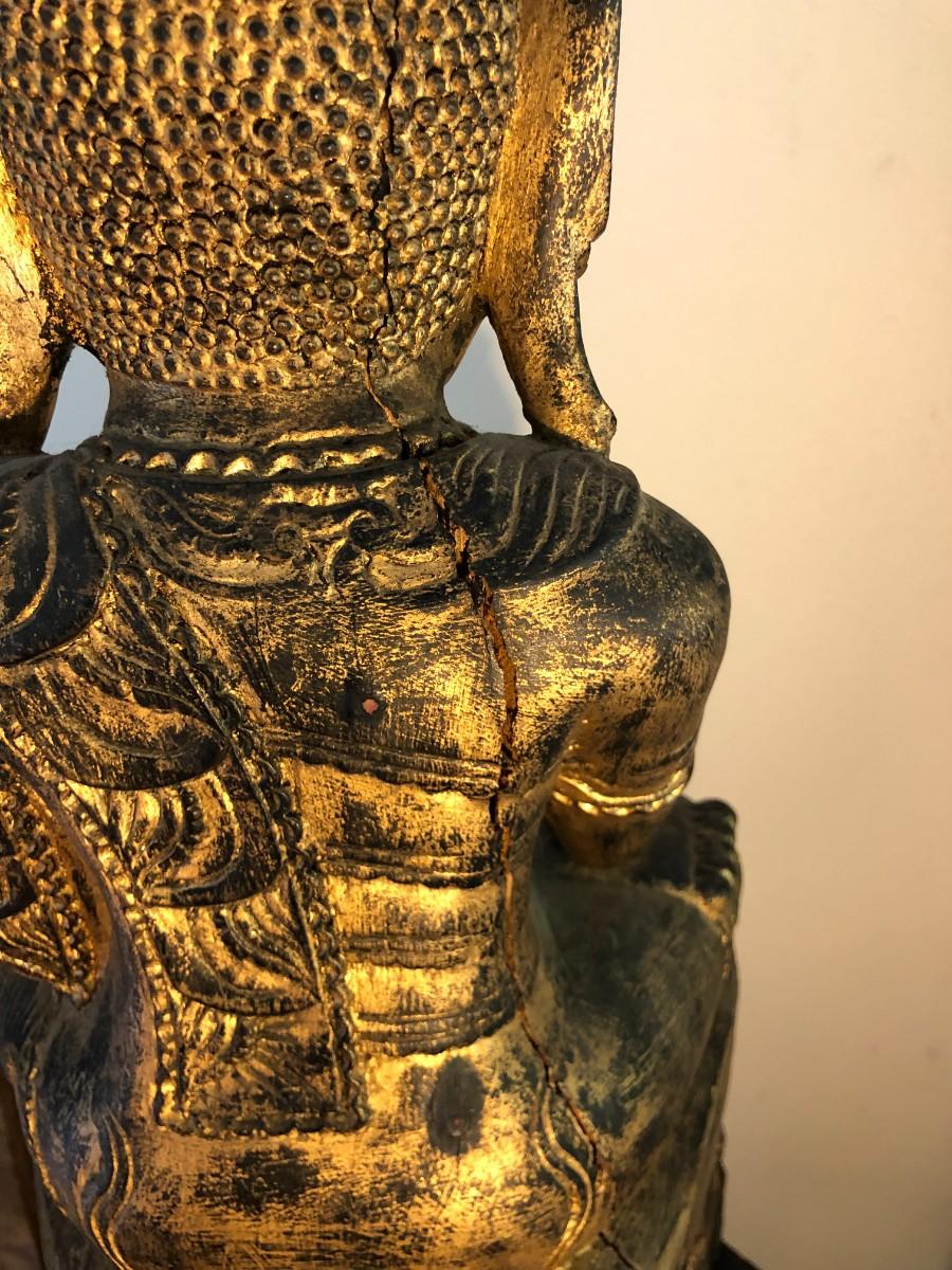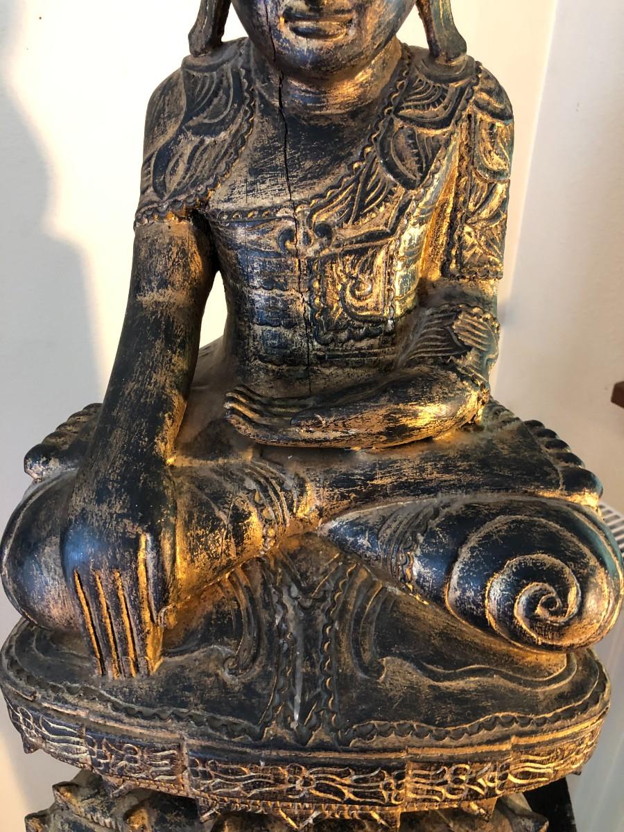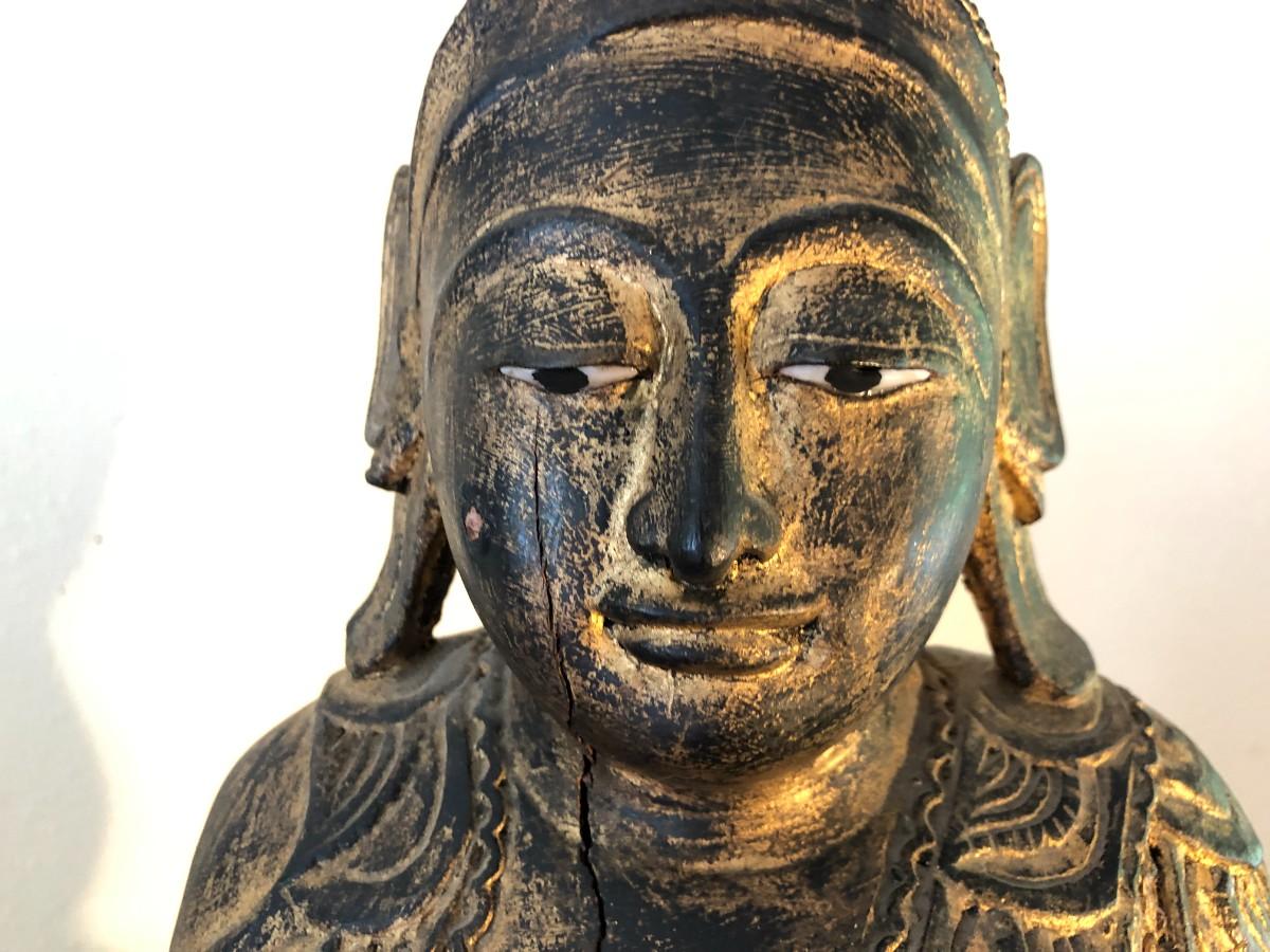 Vintage Carved Wood Buddha Statue in Burmese Style