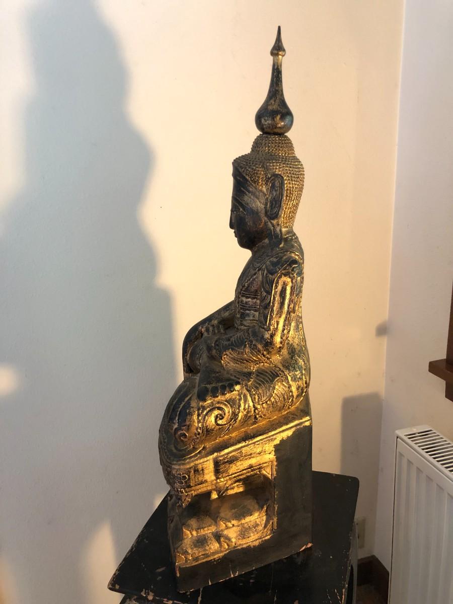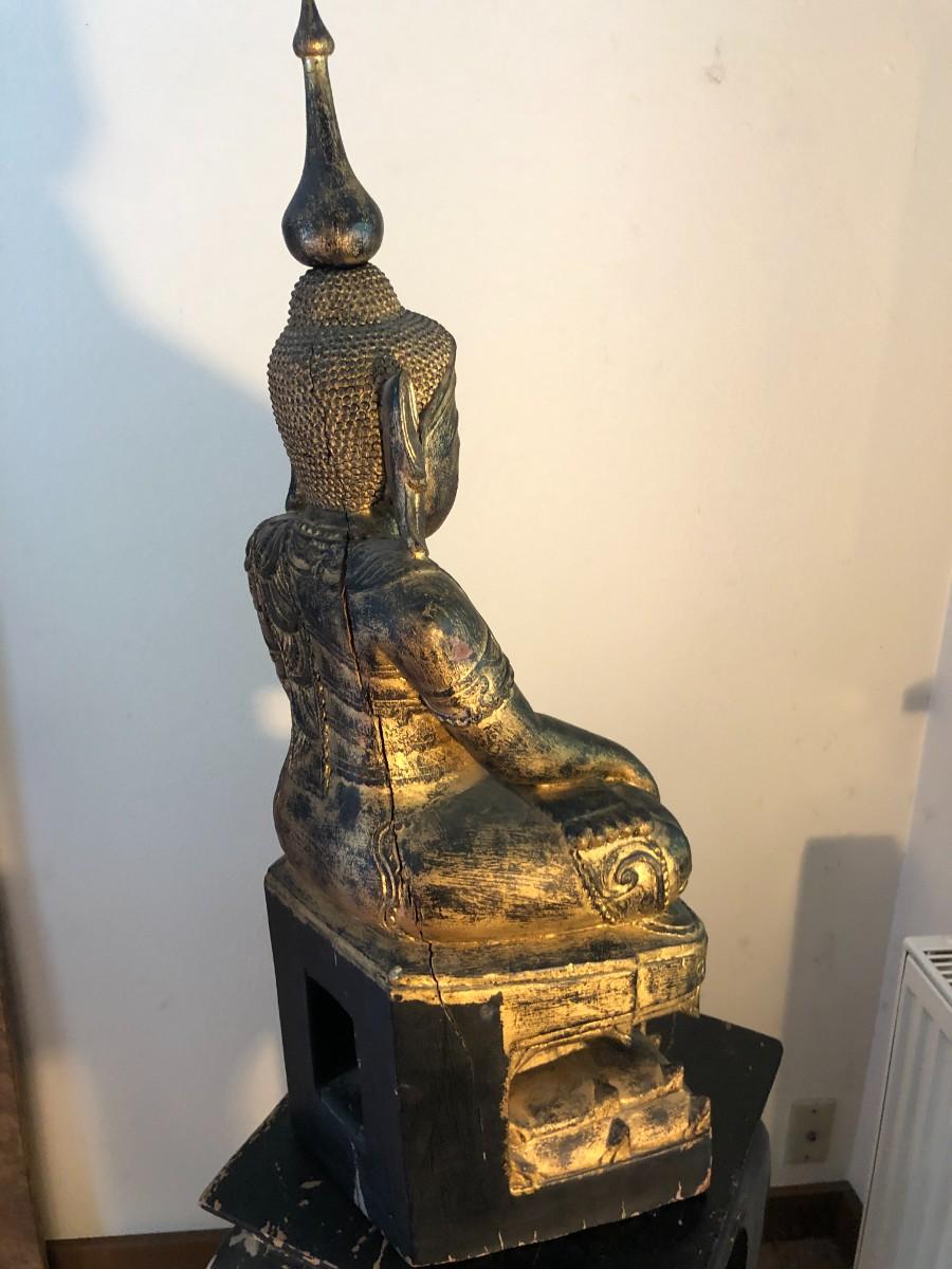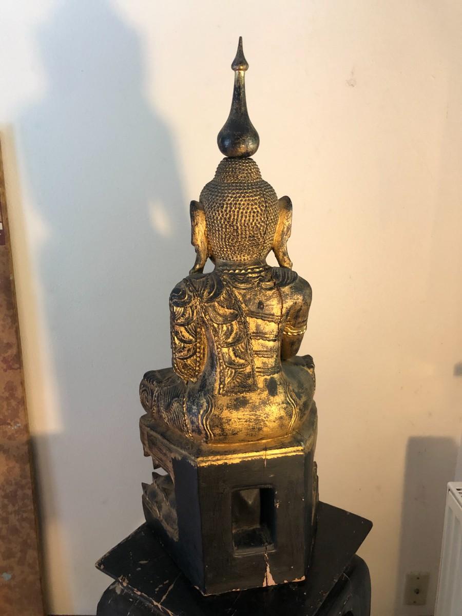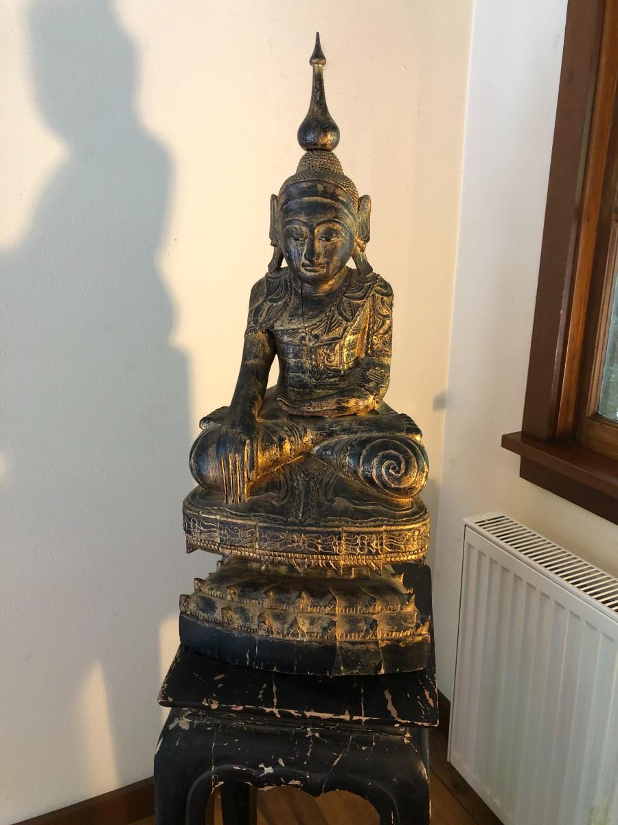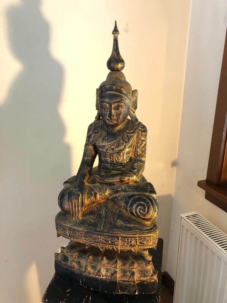 Vintage Carved Wood Buddha Statue in Burmese Style
