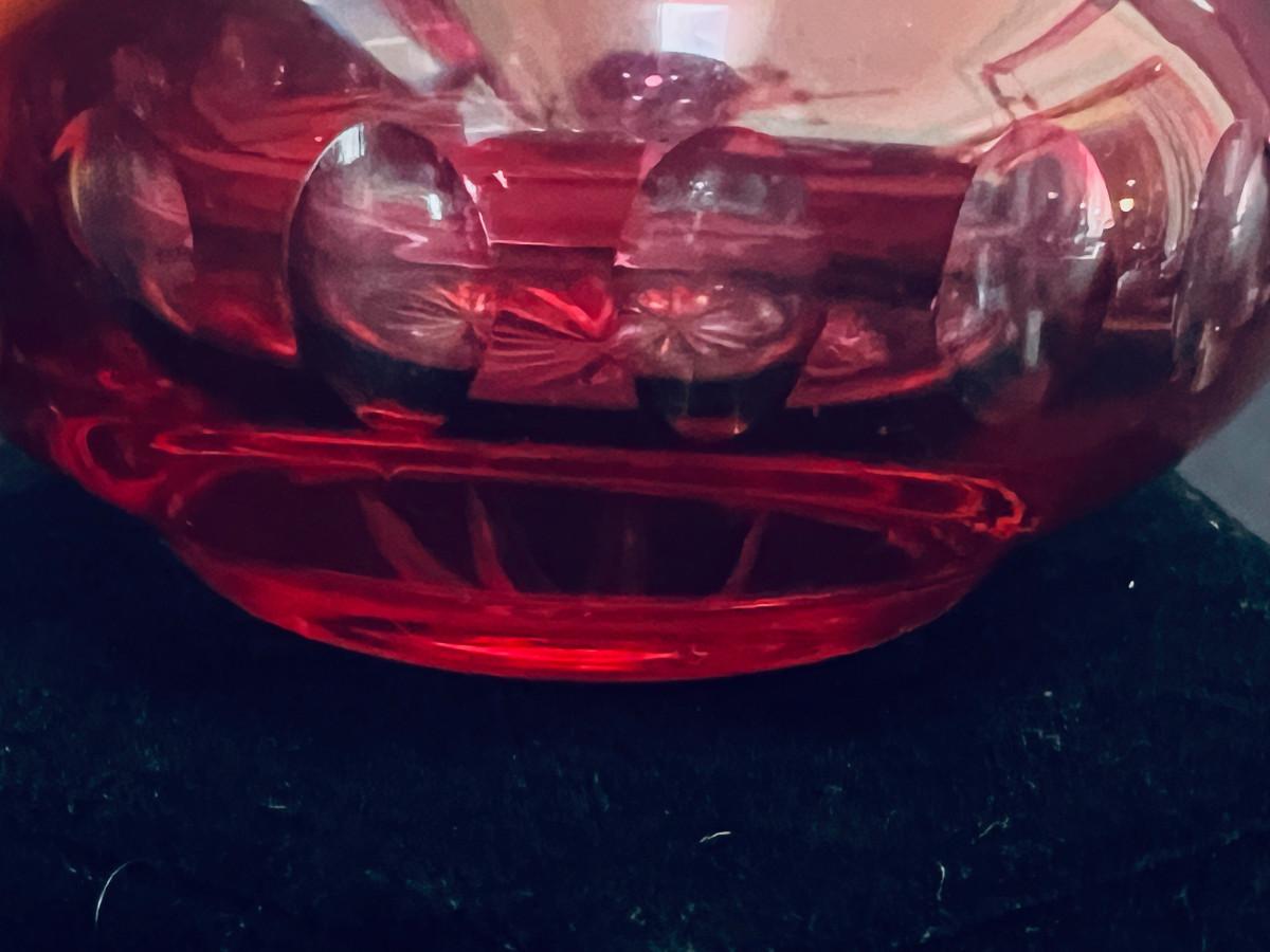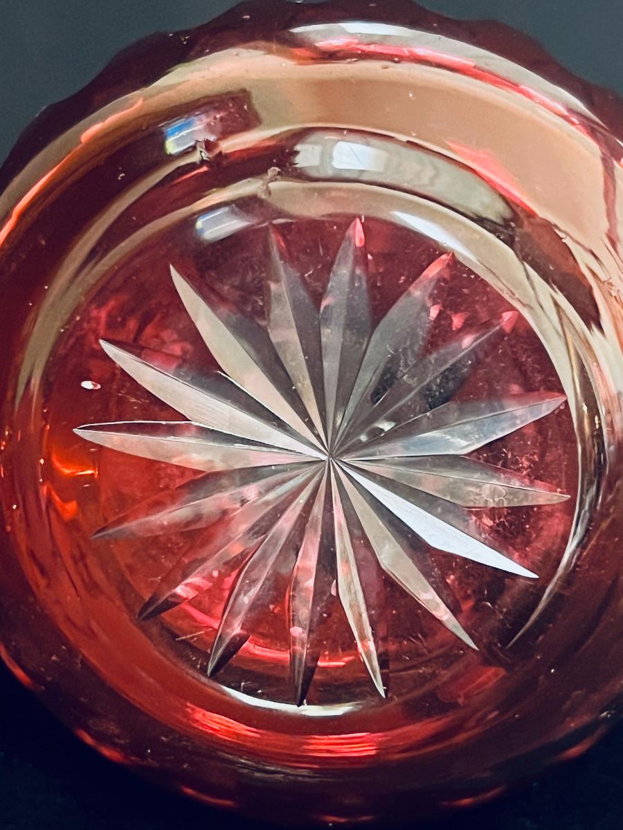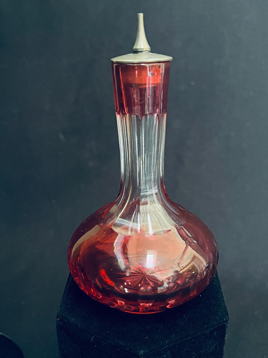 Antique Case Glass Cranberry cut to Clear Perfume Bottle with cork stopper