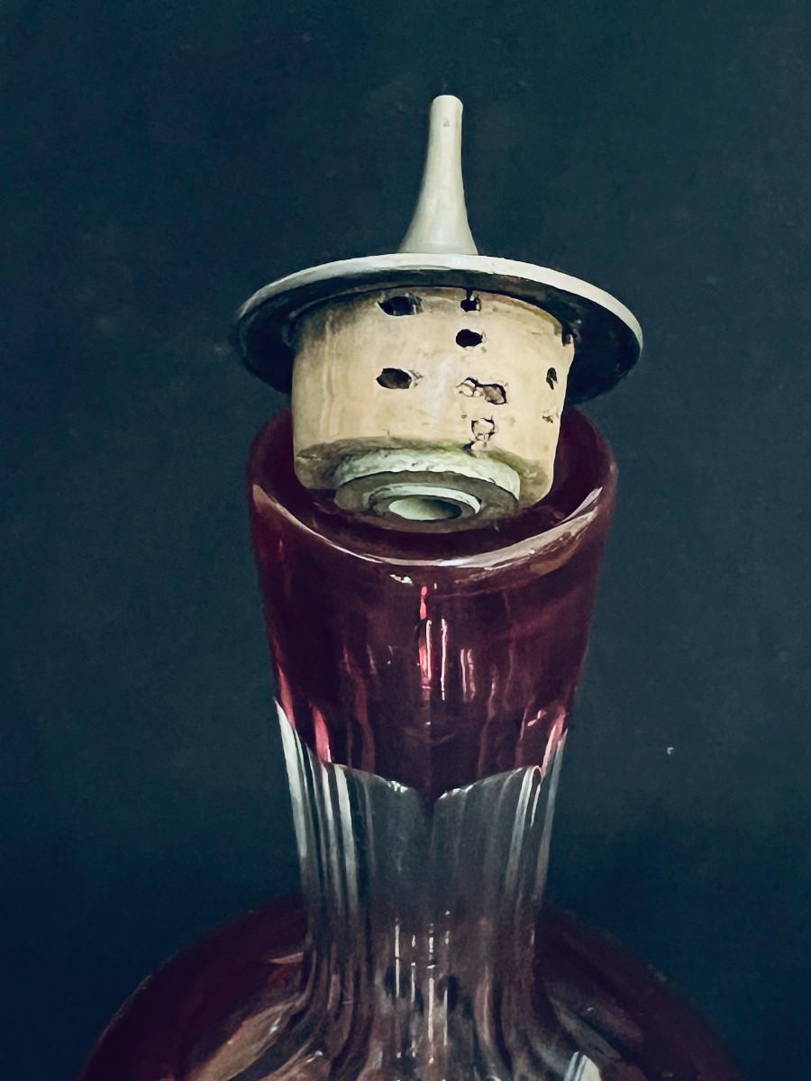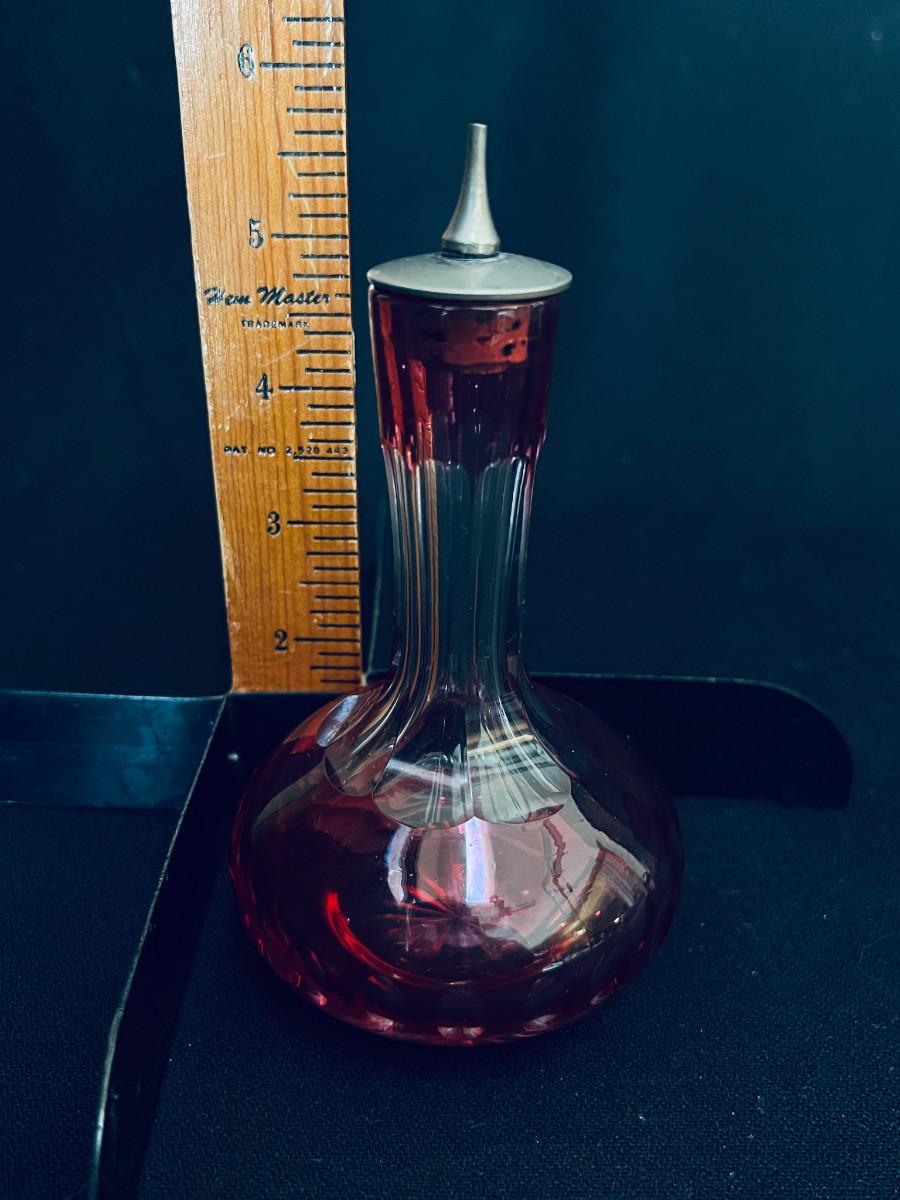 Antique Case Glass Cranberry and Clear Perfume Bottle with cork stopper