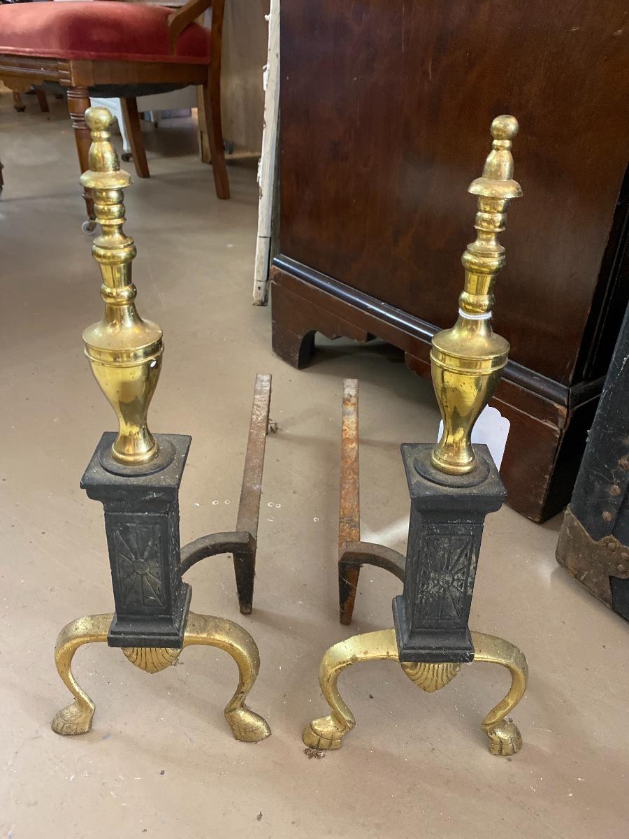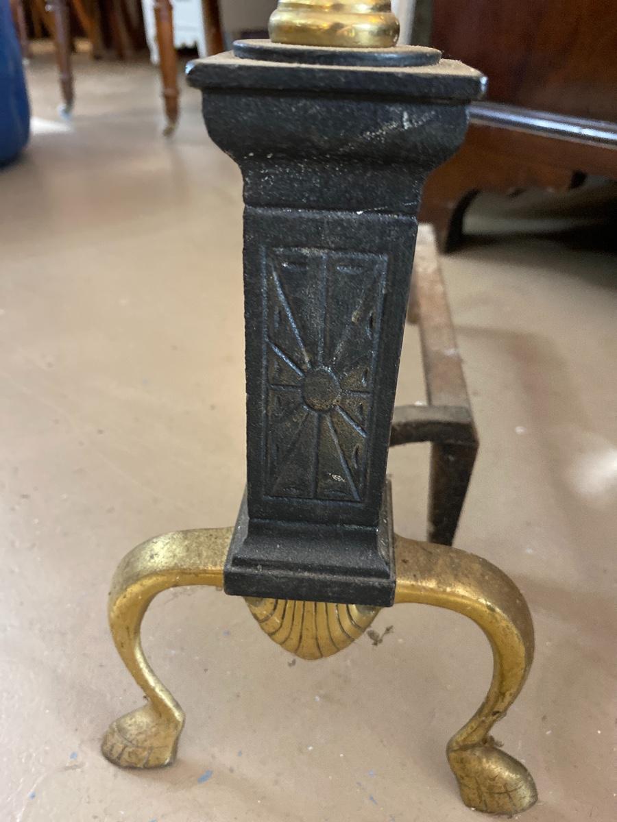 Antique Cast And Brass Andirons