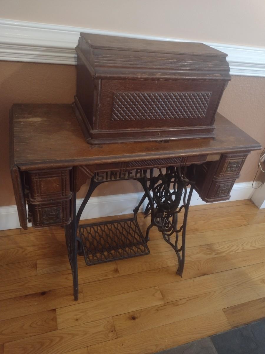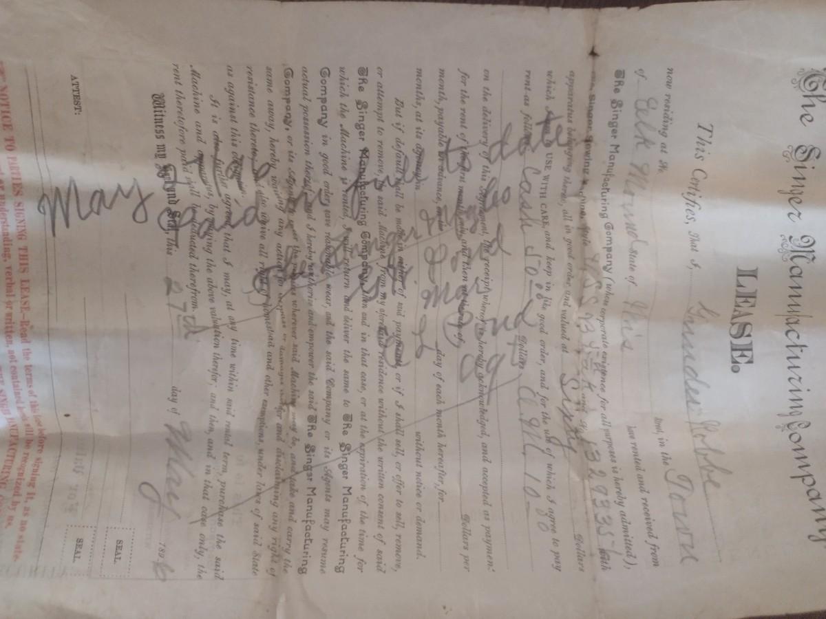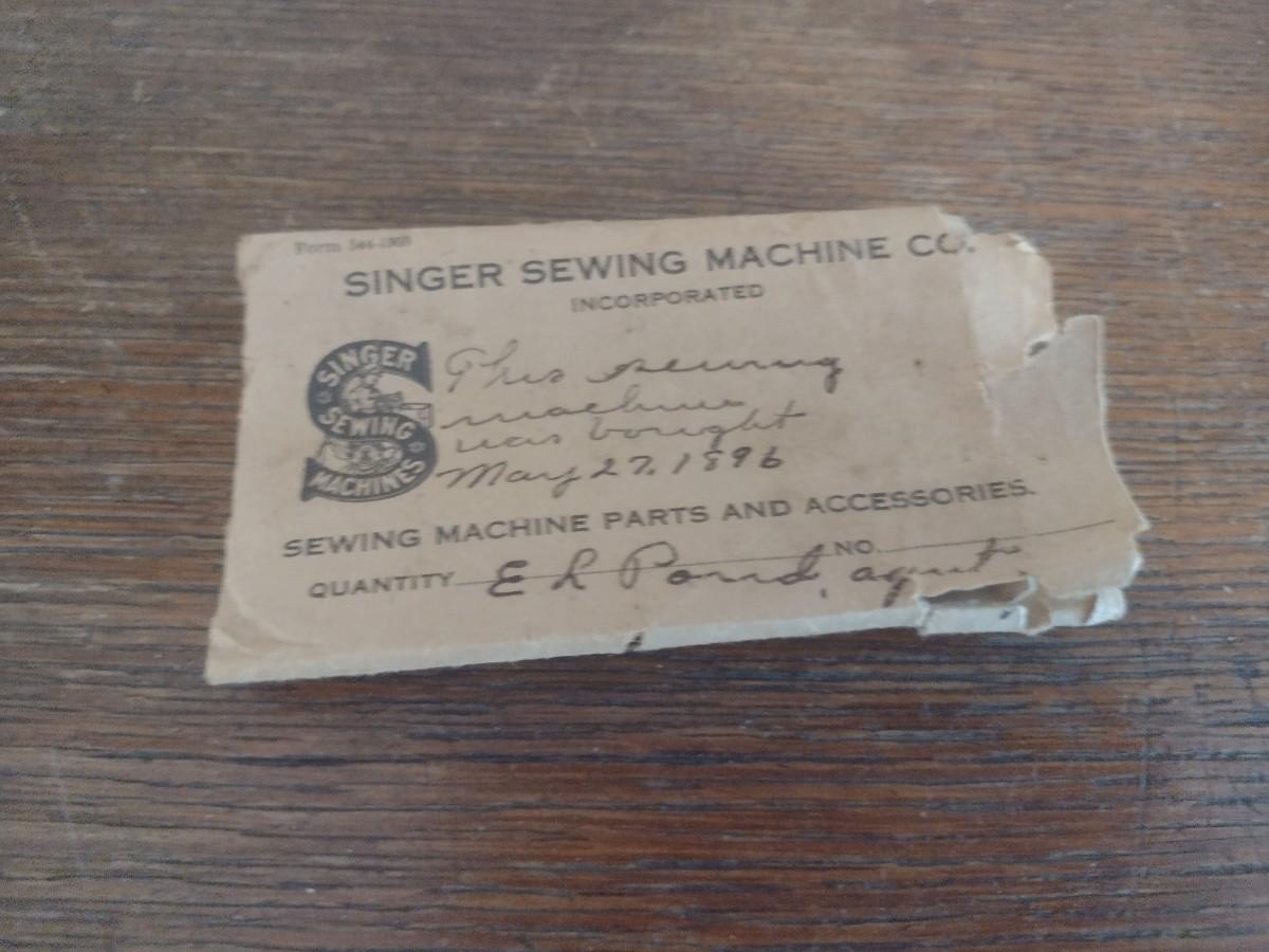 Antique Cast Body 1896 Singer Sewing Machine with Original Paperwork, Lease Agreement and Tool Box