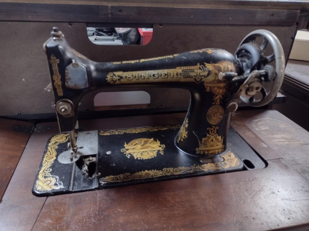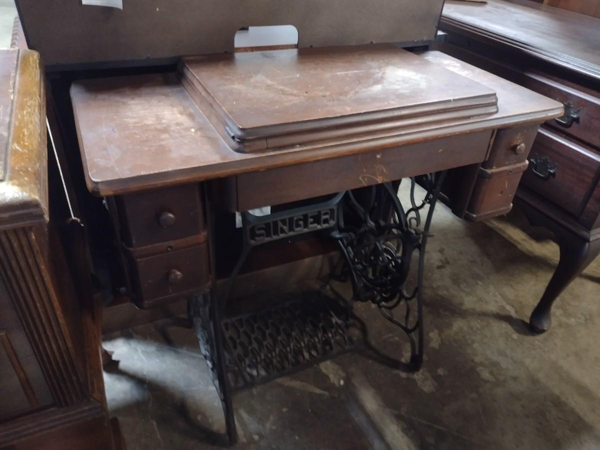 Antique Cast Body Treadle Singer Sewing Machine with Cabinet