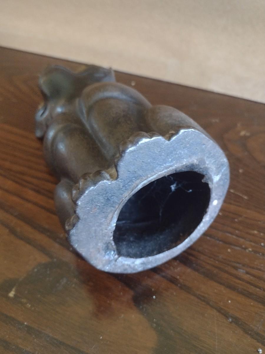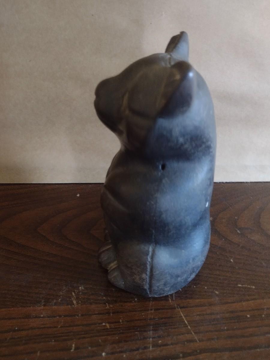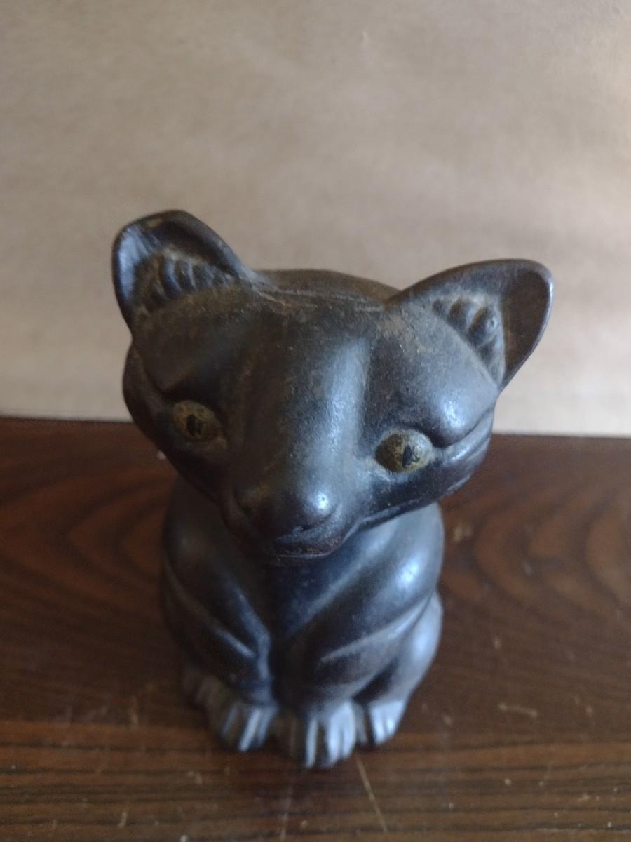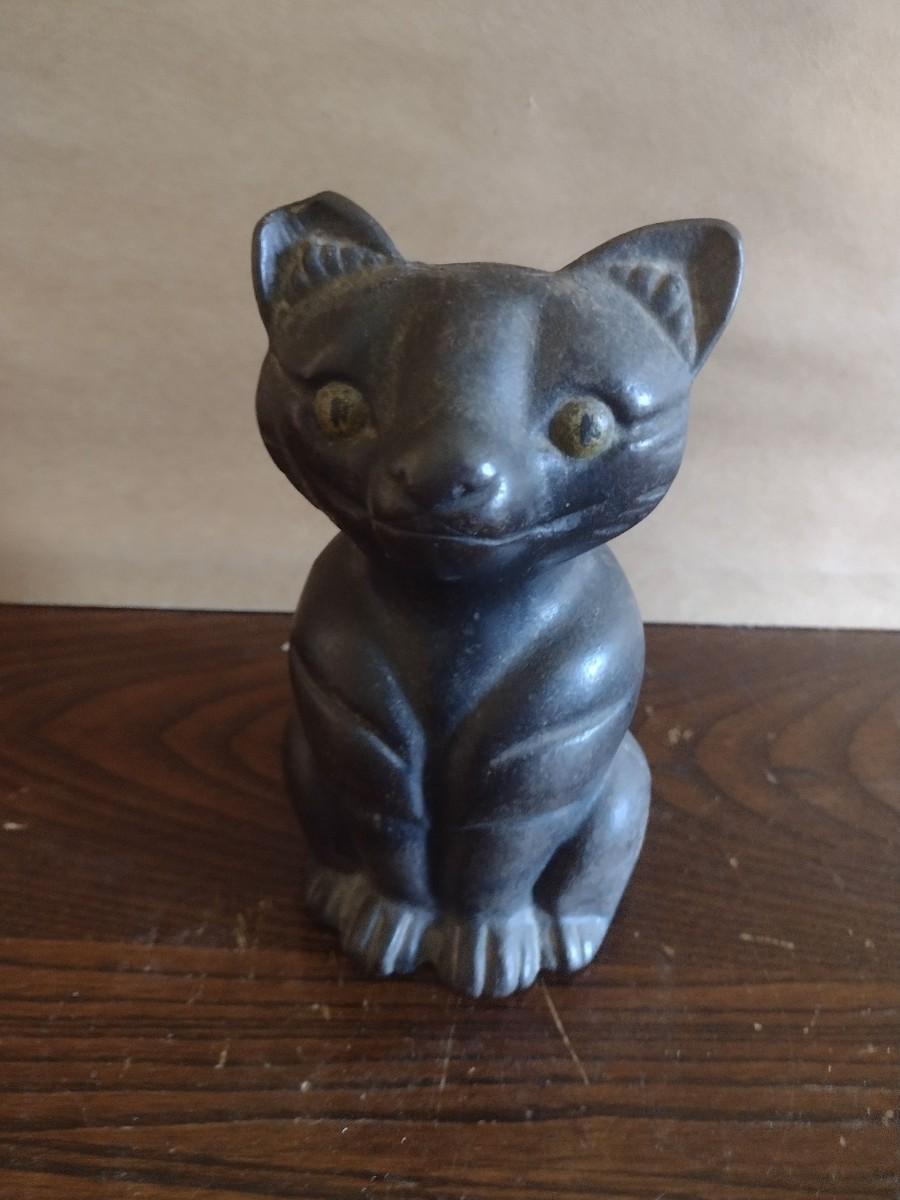 Antique Cast Iron Alley Cat Statuette. Ear looks as though it was designed to be cropped but assume otherwise when bidding. This cast has thick walls and is extremely heavy for its size.