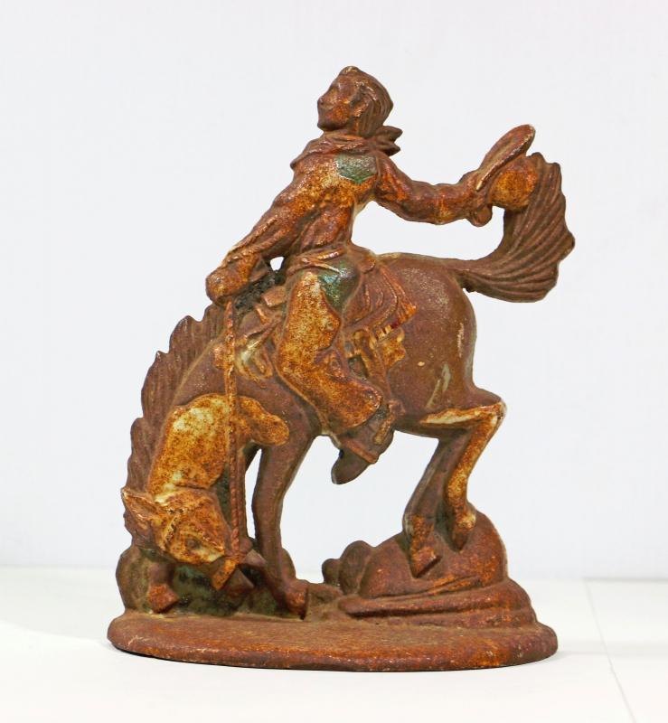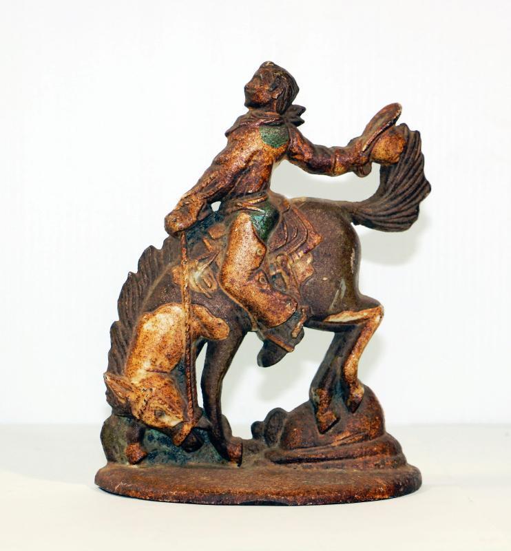 Antique Cast Iron Bookend / Doorstep - Wildwest Cowboy on the horse