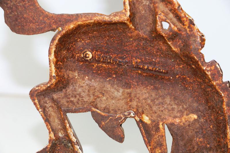 Antique Cast Iron Bookend / Doorstep - Wildwest Cowboy on the horse. It shows aging and slight rusting spots here and there, otherwise great condition, nice and rare find, as seen on pictures.