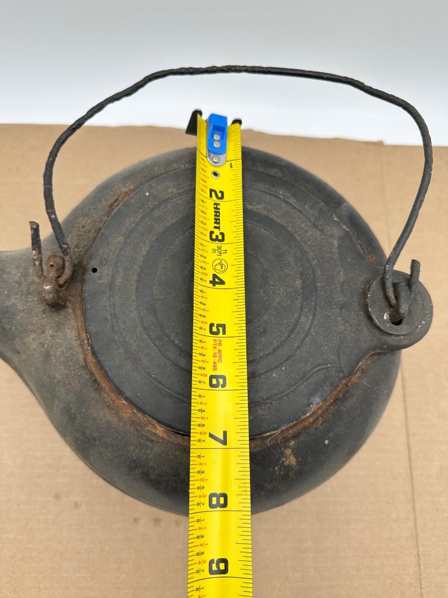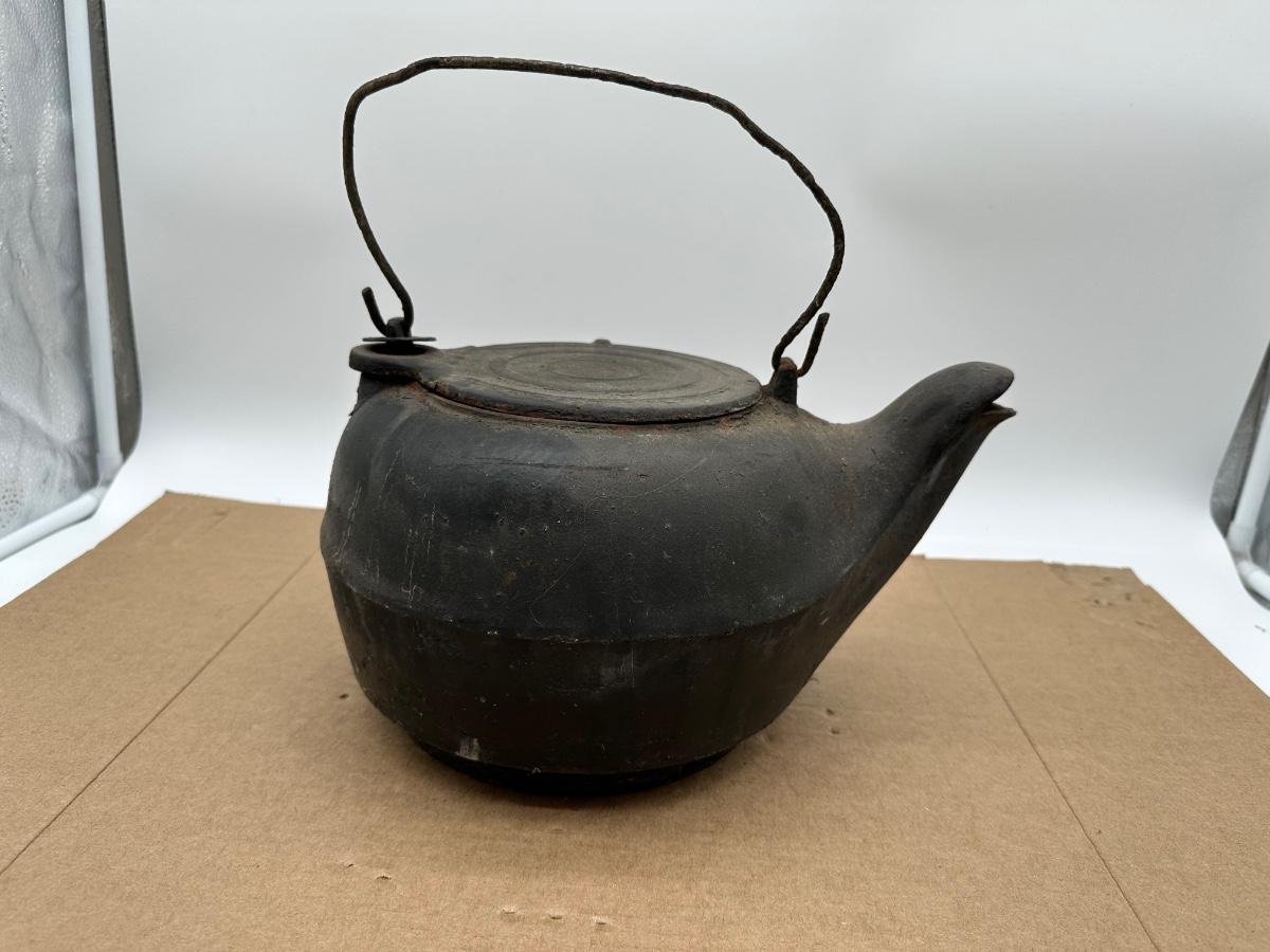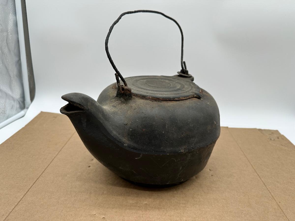 Antique Cast Iron Camp Kettle w/ Wire Bail Handle & Lid – Primitive Fireplace Teapot