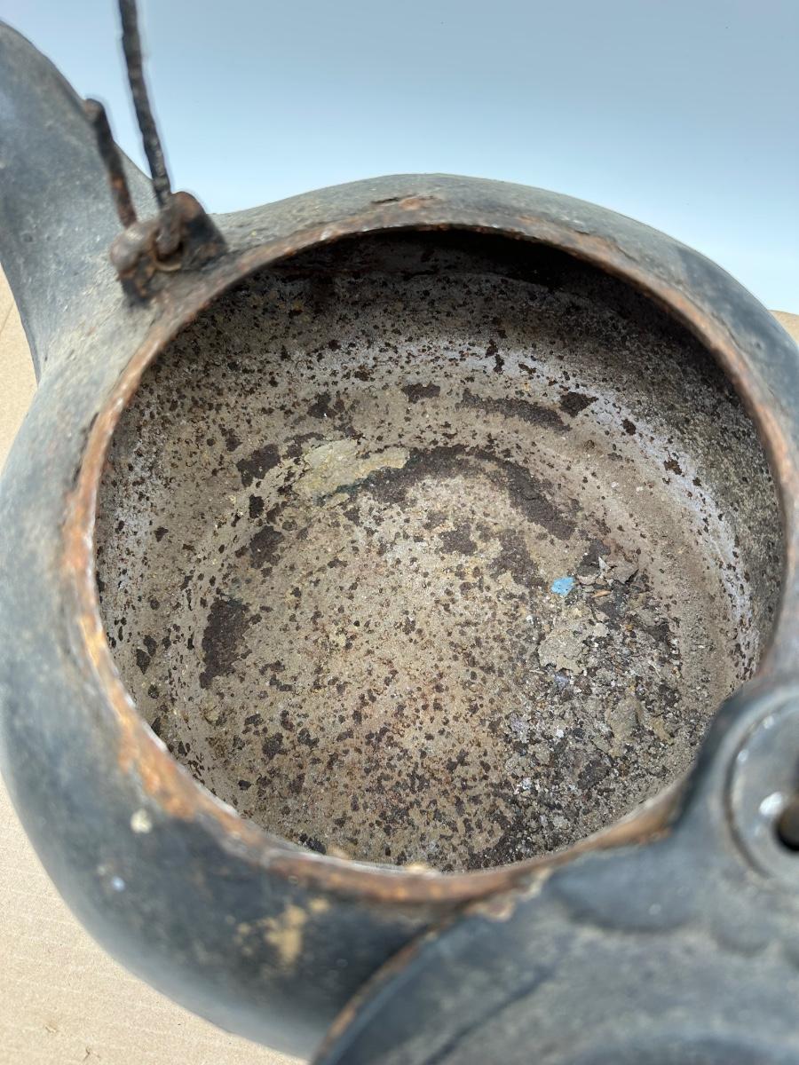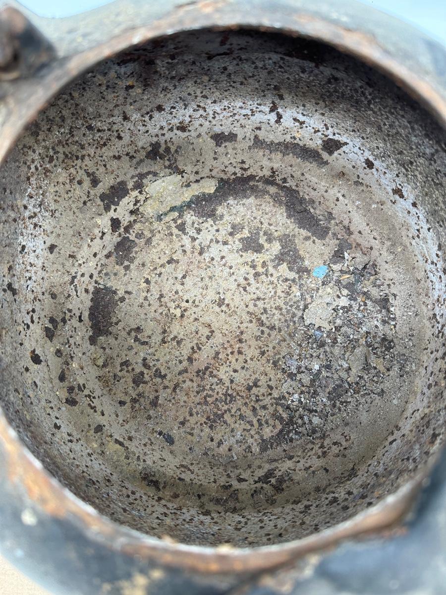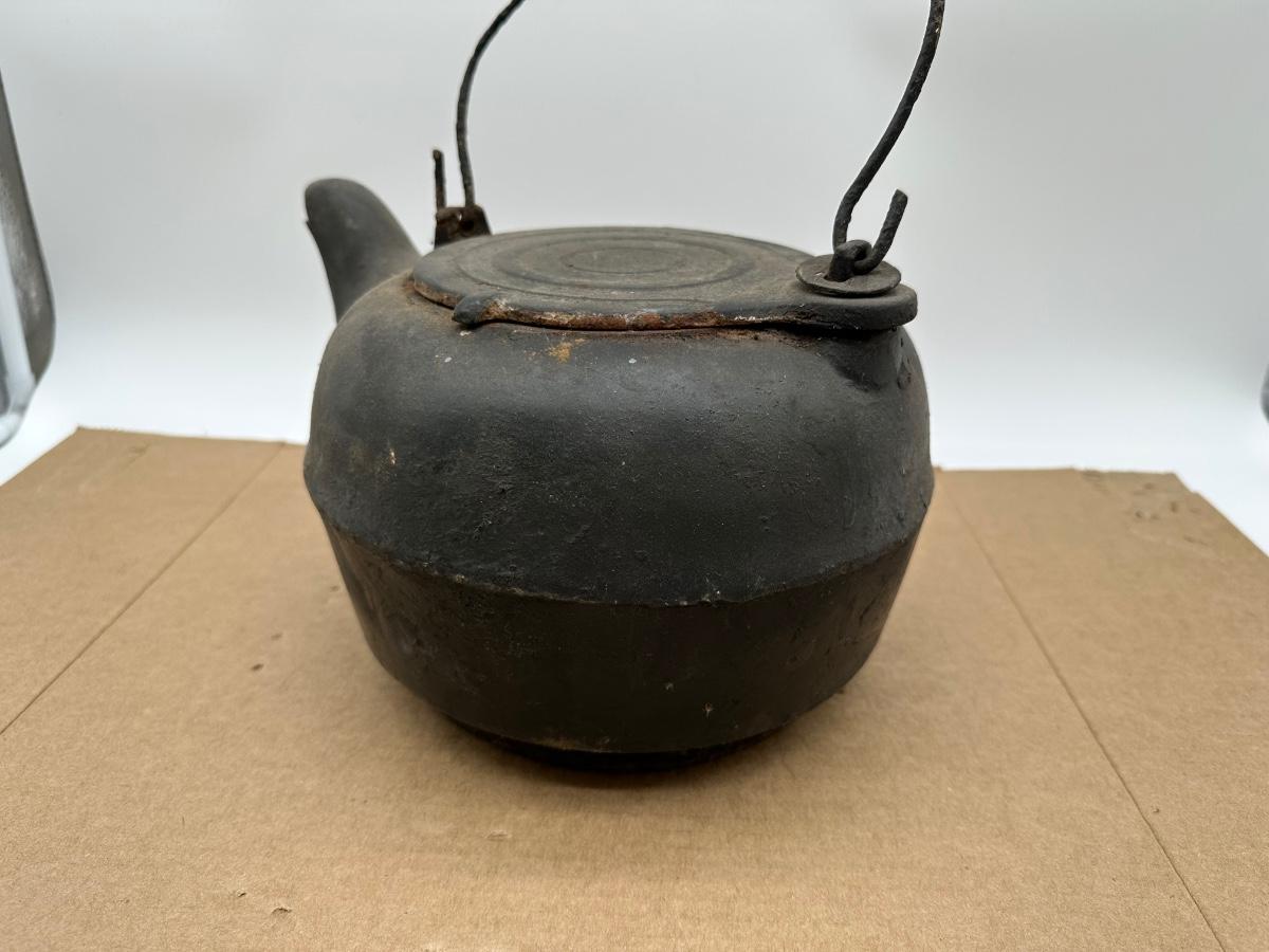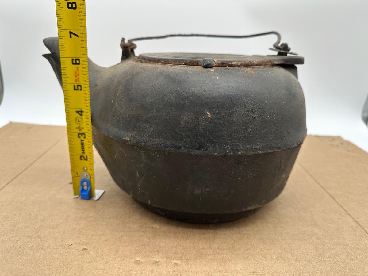 Antique Cast Iron Camp Kettle w/ Wire Bail Handle & Lid – Primitive Fireplace Teapot