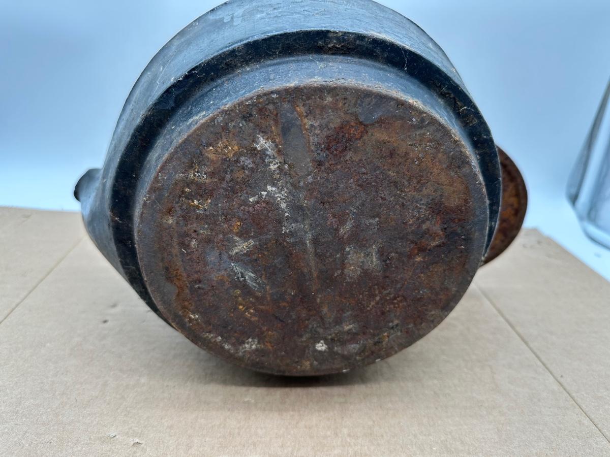 Unmarked example with heavy patina and original surface. Excellent decorative piece for primitive, rustic, or farmhouse décor, or for collectors of early iron cookware.