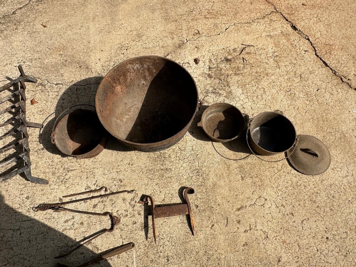 Antique Cast Iron Cauldron, Fireplace Grate and More!