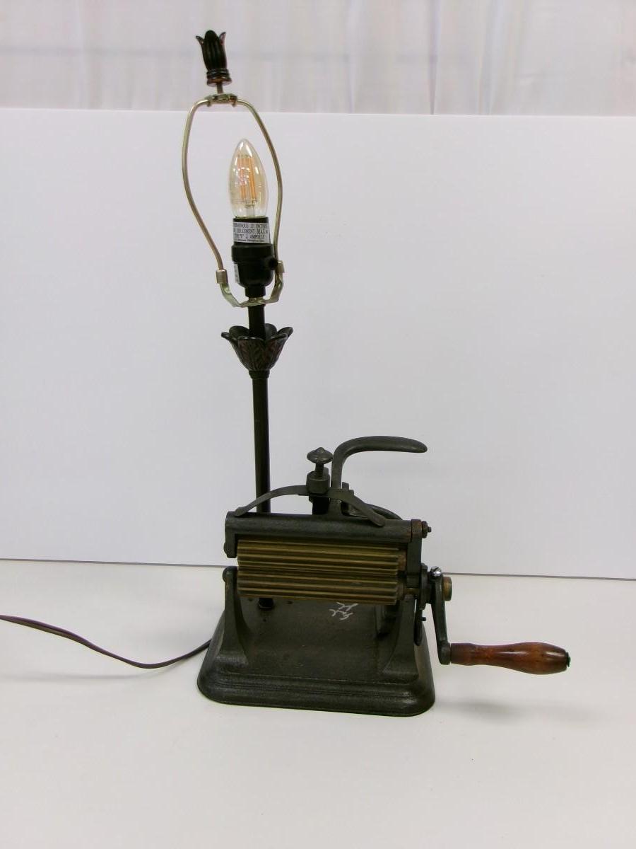 1980's Antique Cast Iron Fluting Pleater Crimper Ruffler Roller Machine Table Lamp Works!
